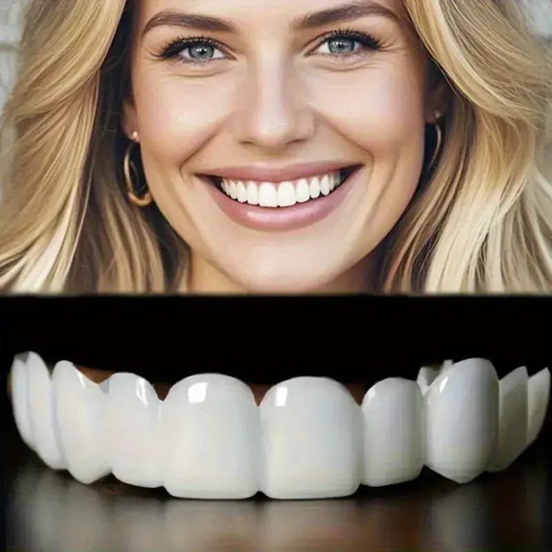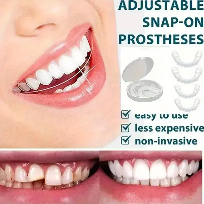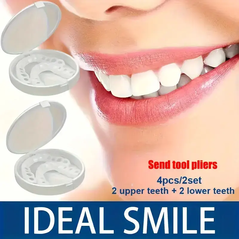 Instant Smile Teeth Fake Teeth for Cosplay Cosmetic Dental Veneers Braces + Case + Pliers Adjustable For Both Men And Women, Featuring A Plaid Design. The Whitening Effect Boosts Confidence.