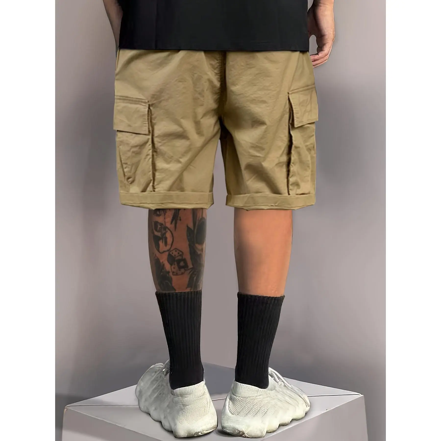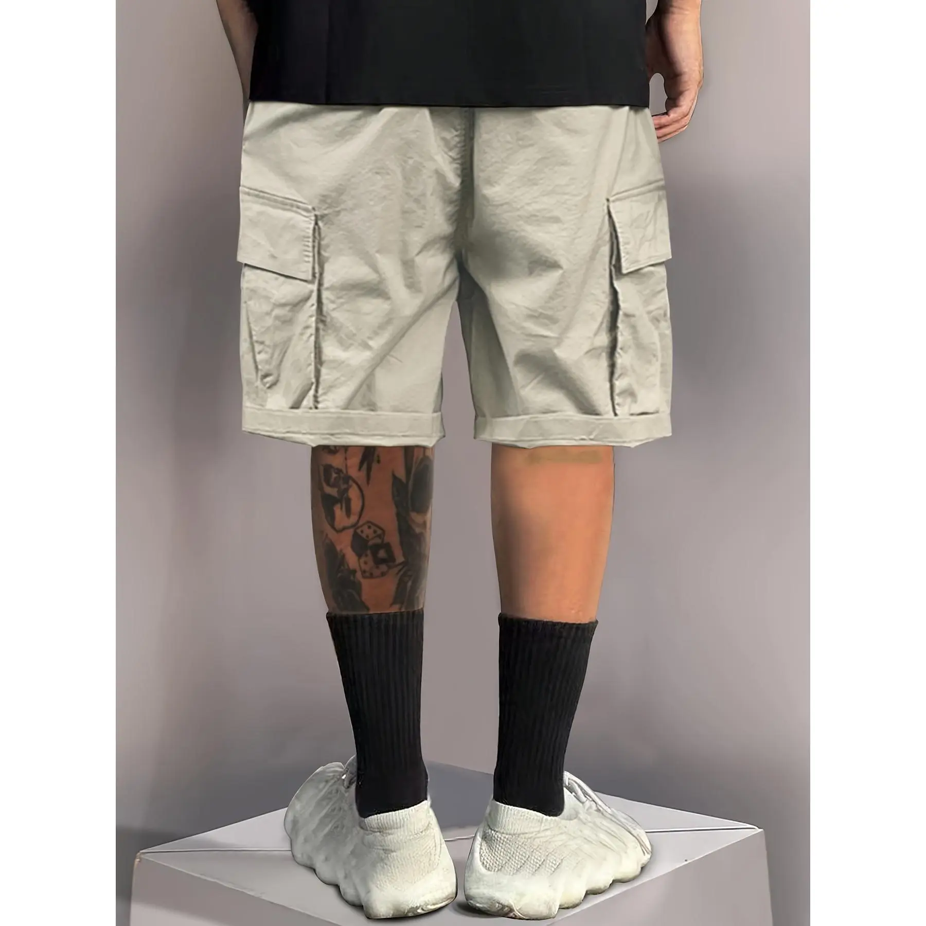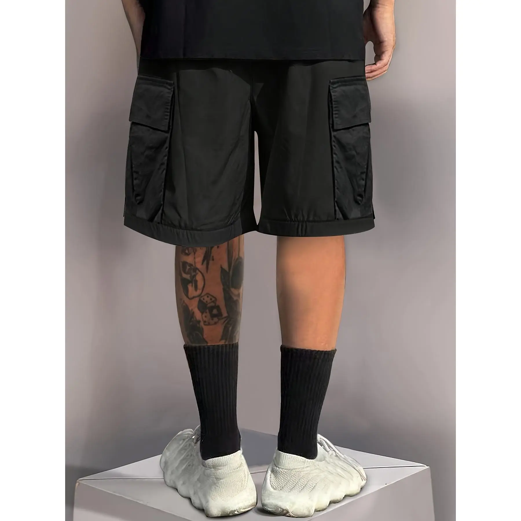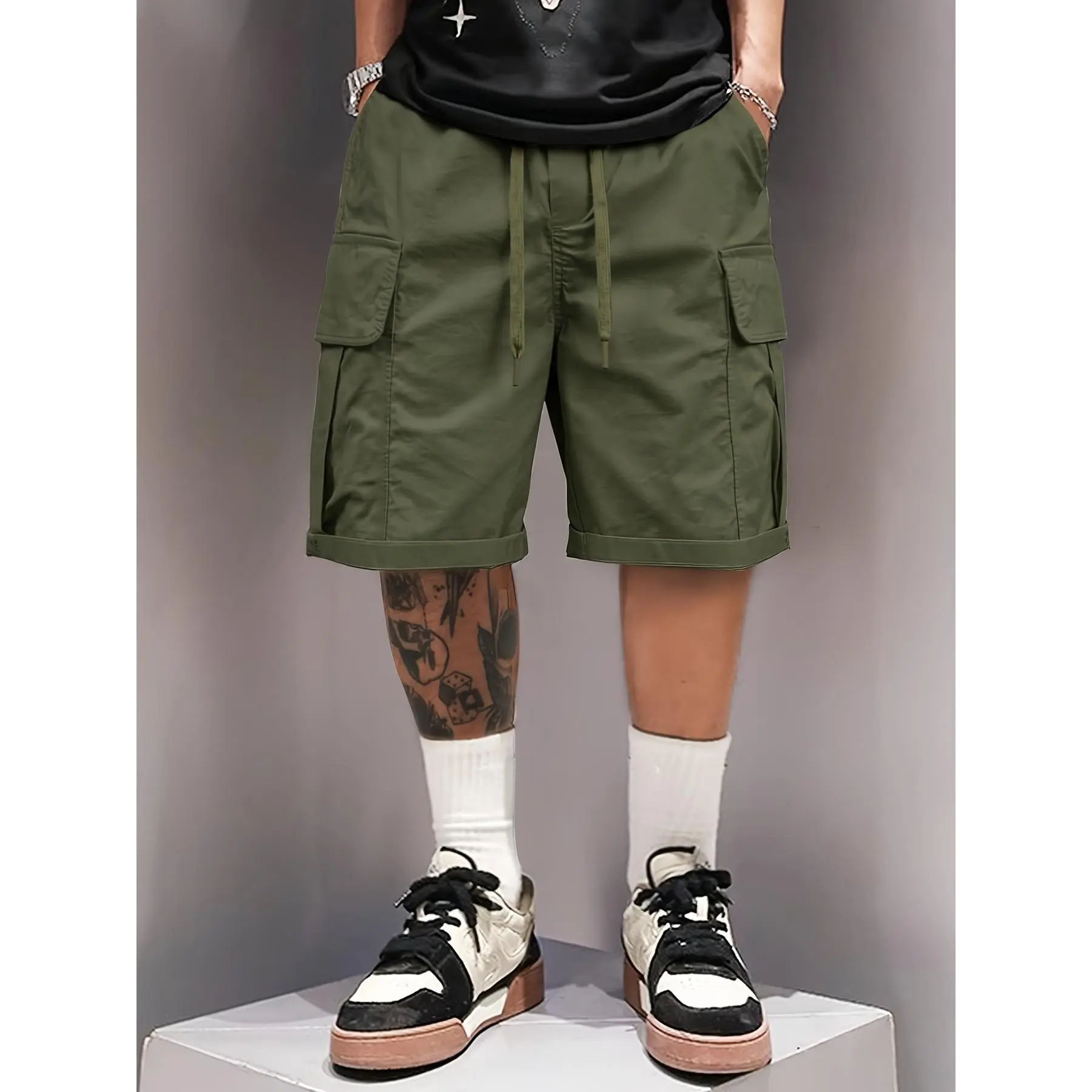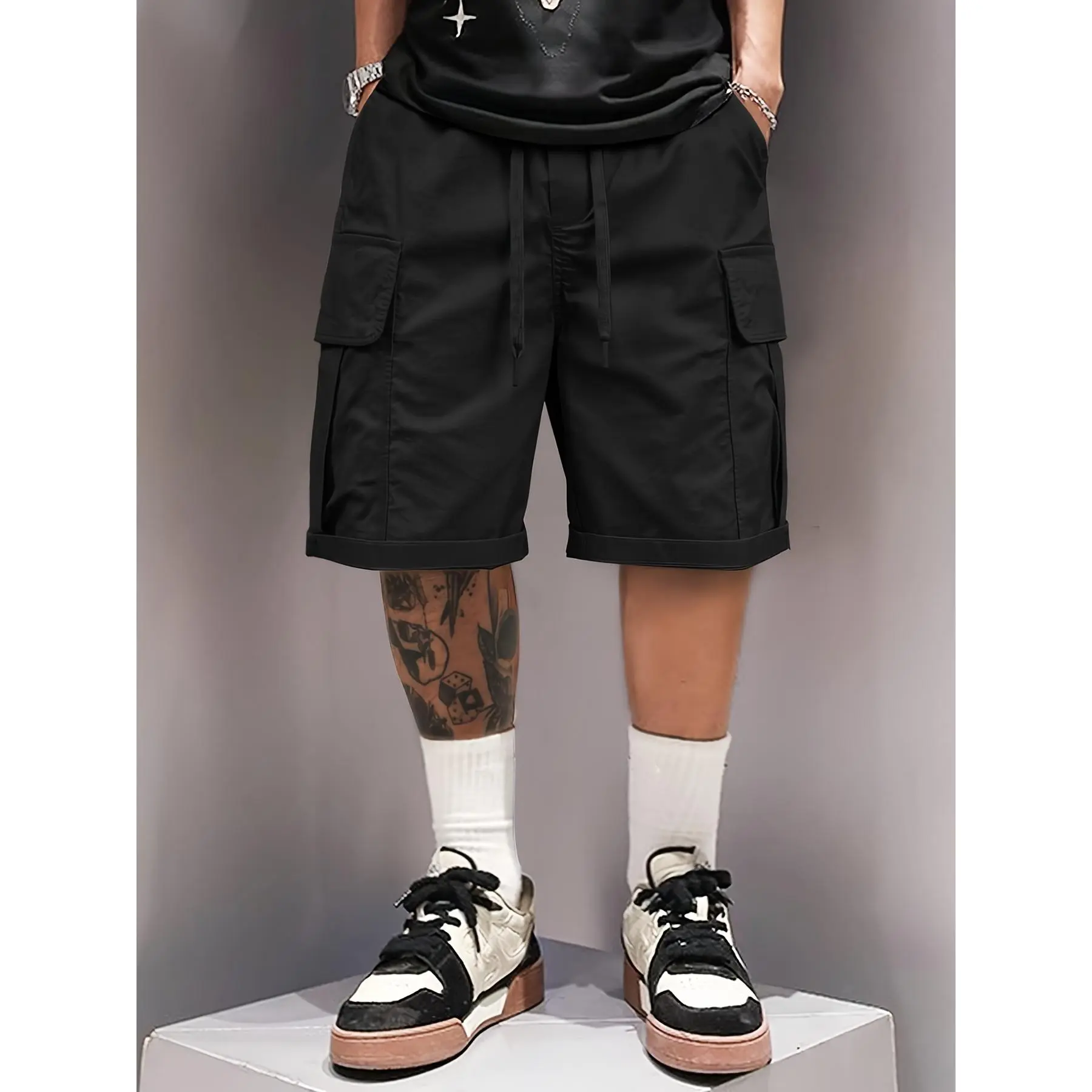 NewBdhjydb Men'S Summer Shorts, Casual Drawstring Suspenders for The Street, Lightweight Loose Fashion Shorts with Large Flap Pockets, Men'S Outdoor Cargo Pants.