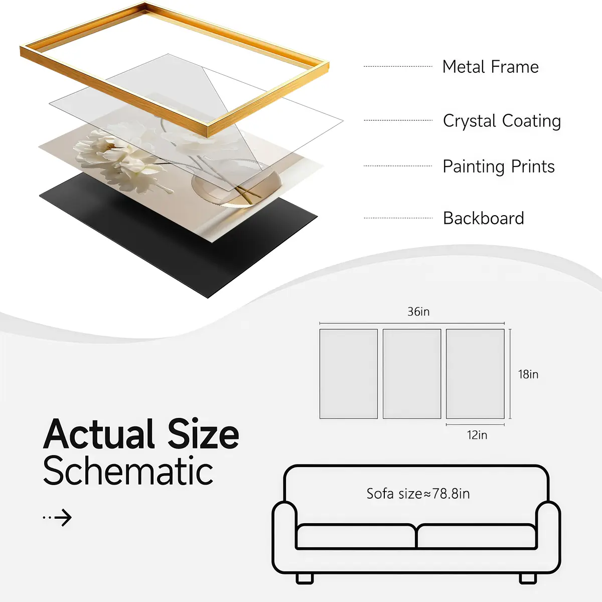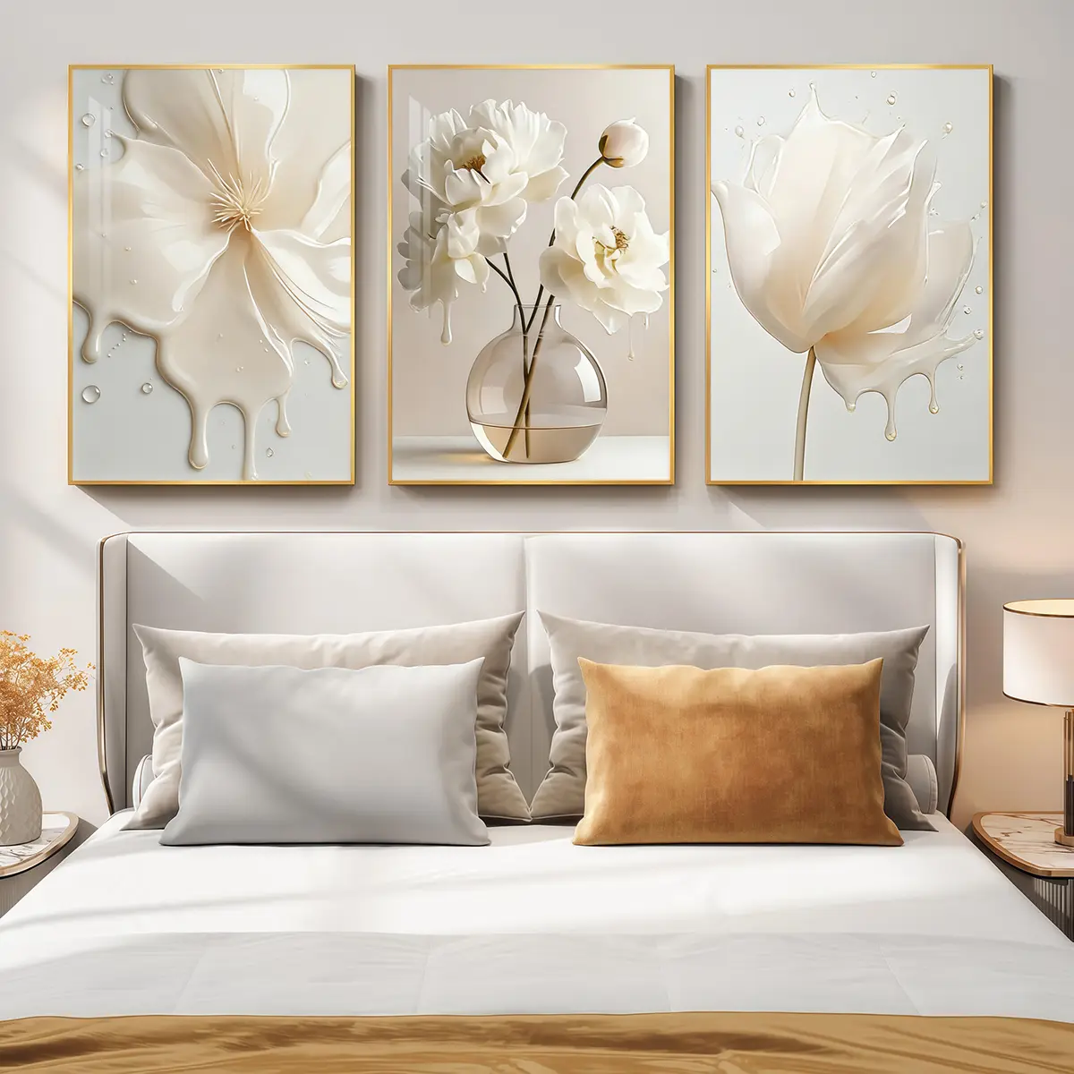 3 Counts Aluminum Alloy Framed Painting, White Floral Vase Artwork, Home Decoration For Living Room, Bedroom, Office, Restaurant, Hallway Wall Decor, Odorless Print Artwork, Luxury Perfect Gift For Friends And Family