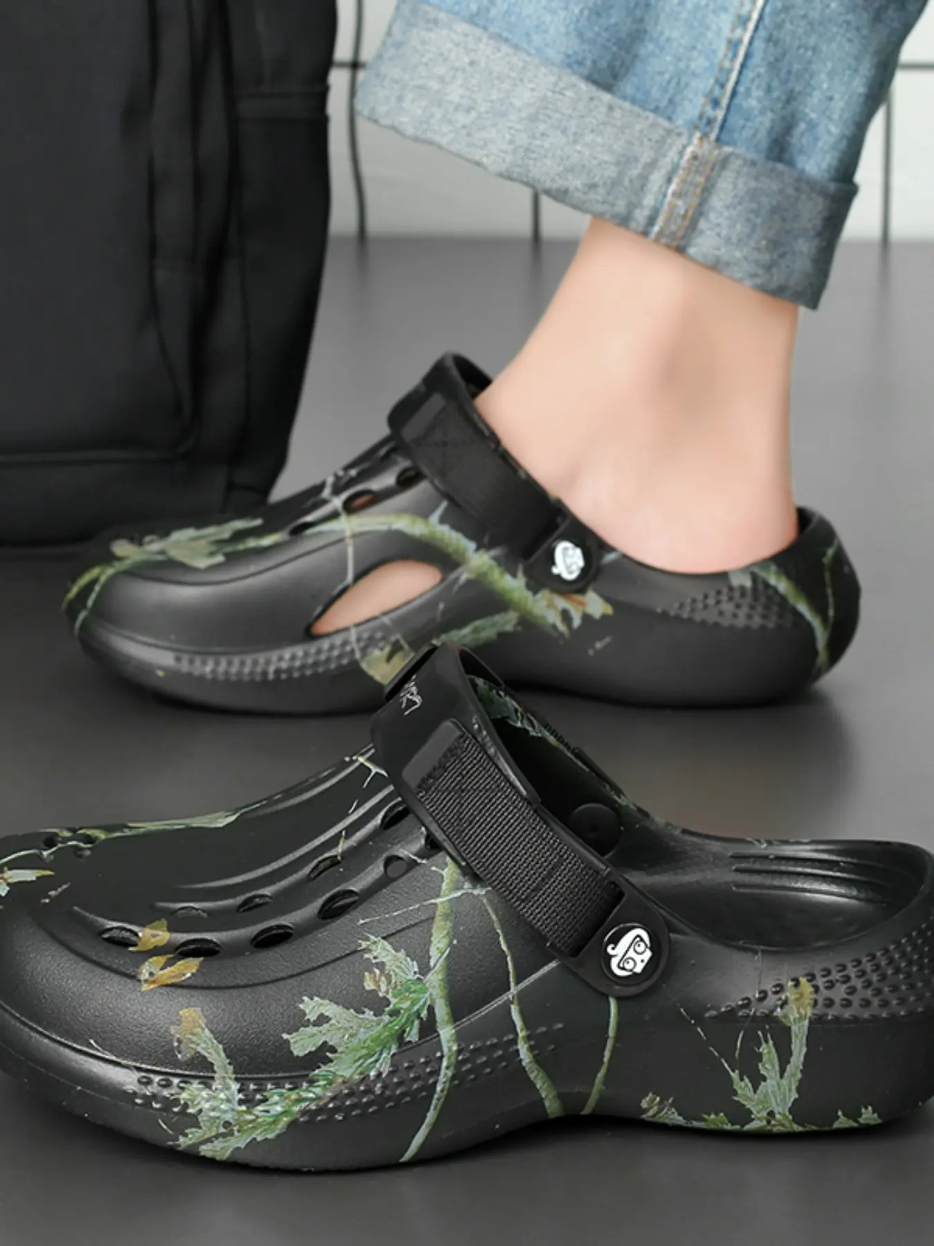 Men's Large Size Printed Holey Shoes, Summer Eva Anti-Slip Driving Sandals, Outdoor Beach Slippers, Couples' Wearable Footwear