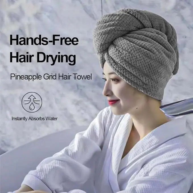 Microfiber Hair Towel Wrap for Women, Super Absorbent, Fast Drying Towel Turban with Button for All Hair Style, Shower Essentials, Grey