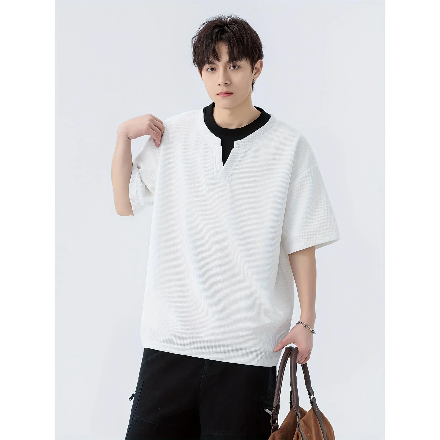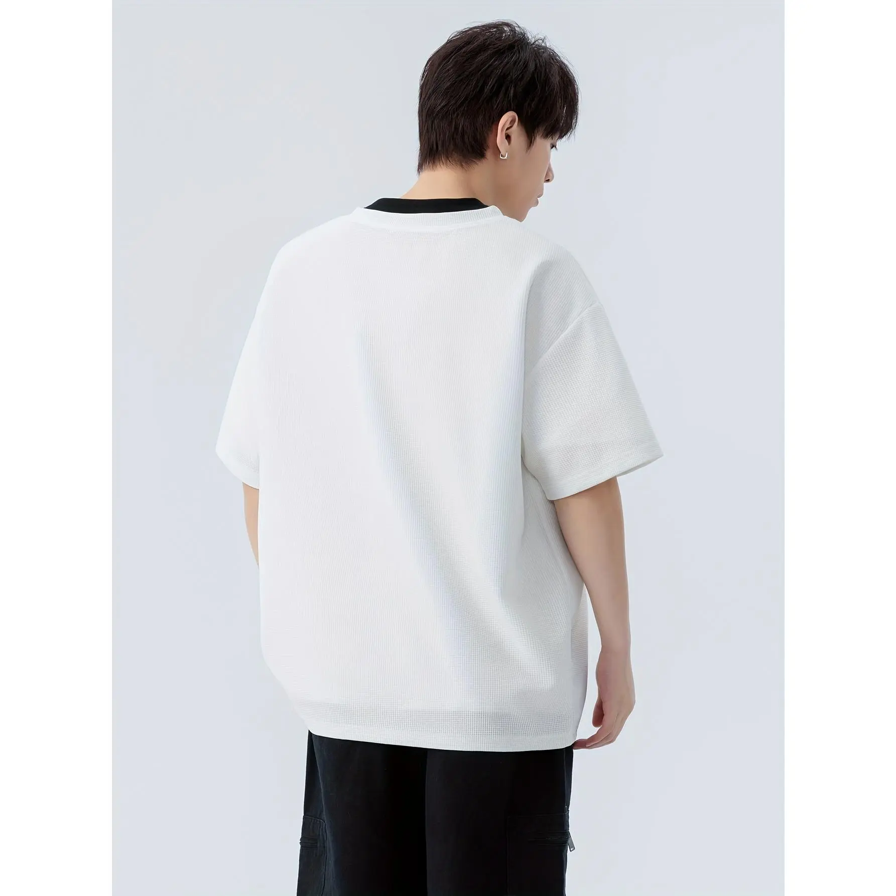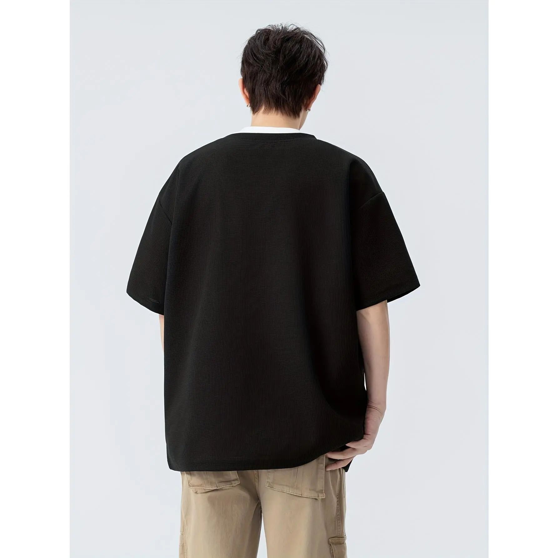 NewBdhjydb Men's Black T-Shirt - Fake Two-Piece Design, Lightweight Summer Top for Everyday & Formal Outfits - Machine Washable Casual Shirt, Versatile Clothing, Layered Look, Durable Construction, Short Sleeve Tee, Streetwear Style