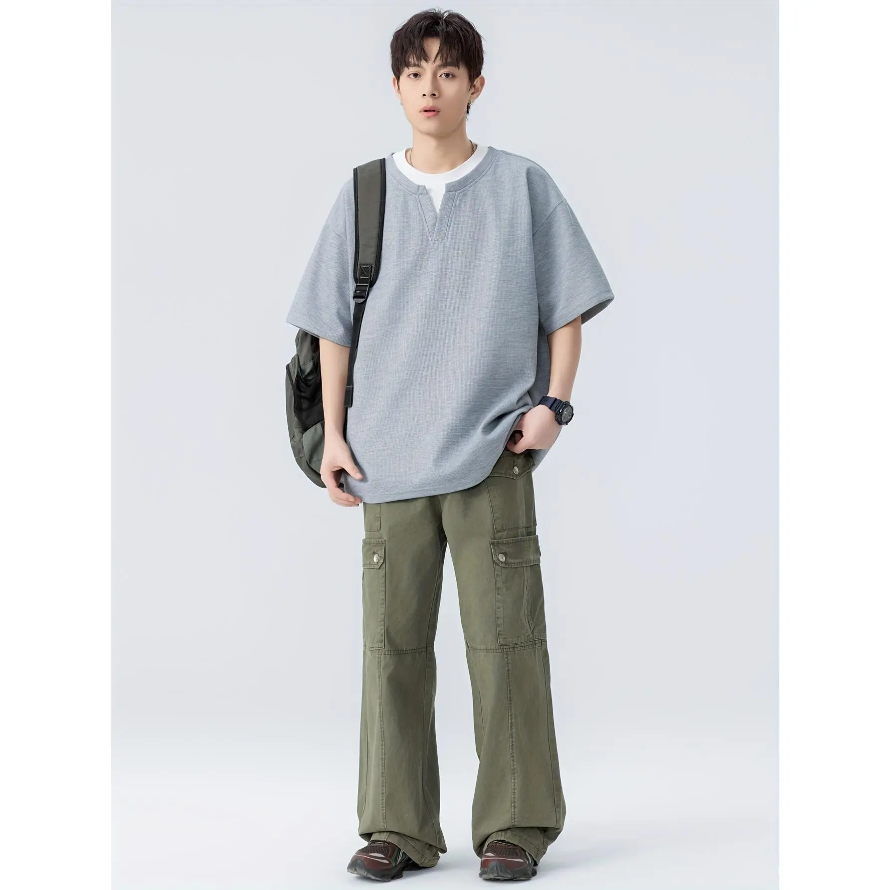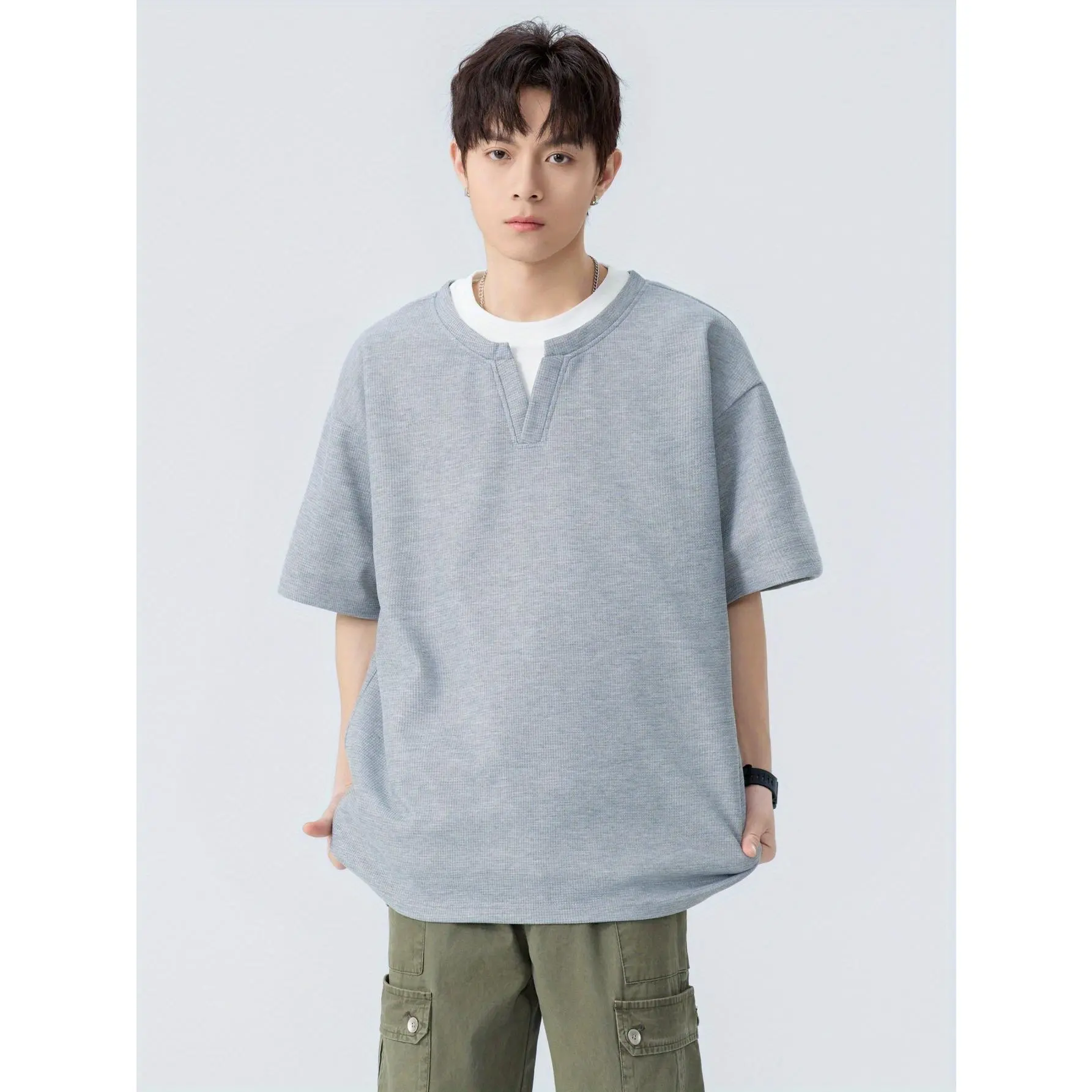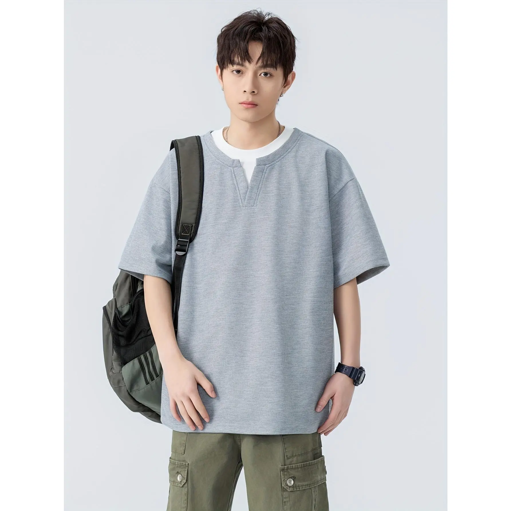 Material: PolyesterOther Material: PolyesterComposition: 100% PolyesterLength: RegularBelt: NoSleeve Length: Short SleeveSleeve Type: Regular SleeveDetails: Color BlockPattern: Solid colorApplicable People: MenSheer: NoFabric: Slight StretchPlacket Type: PulloversCollar Style: Scoop NeckContour: RegularSeason: SummerOperation Instruction: Machine wash or professional dry cleanStyle: CasualOccasion: Weekend CasualFit Type: HWeaving Method: WovenPrinting Type: No PrintingScene: Daily & CasualChest Pad: No PaddingFabric Weight: 240Item ID: DC5259305Origin: Guangdong,China