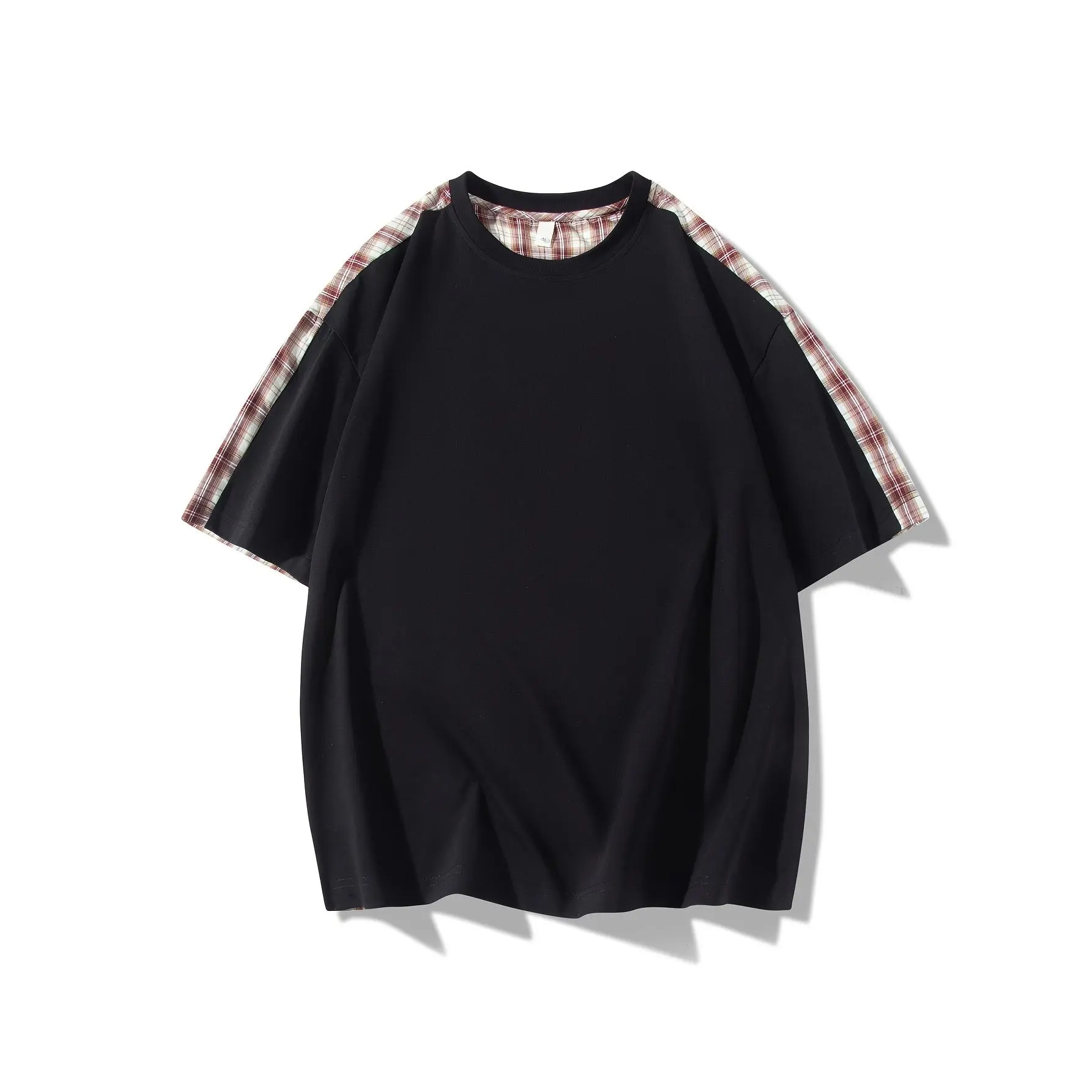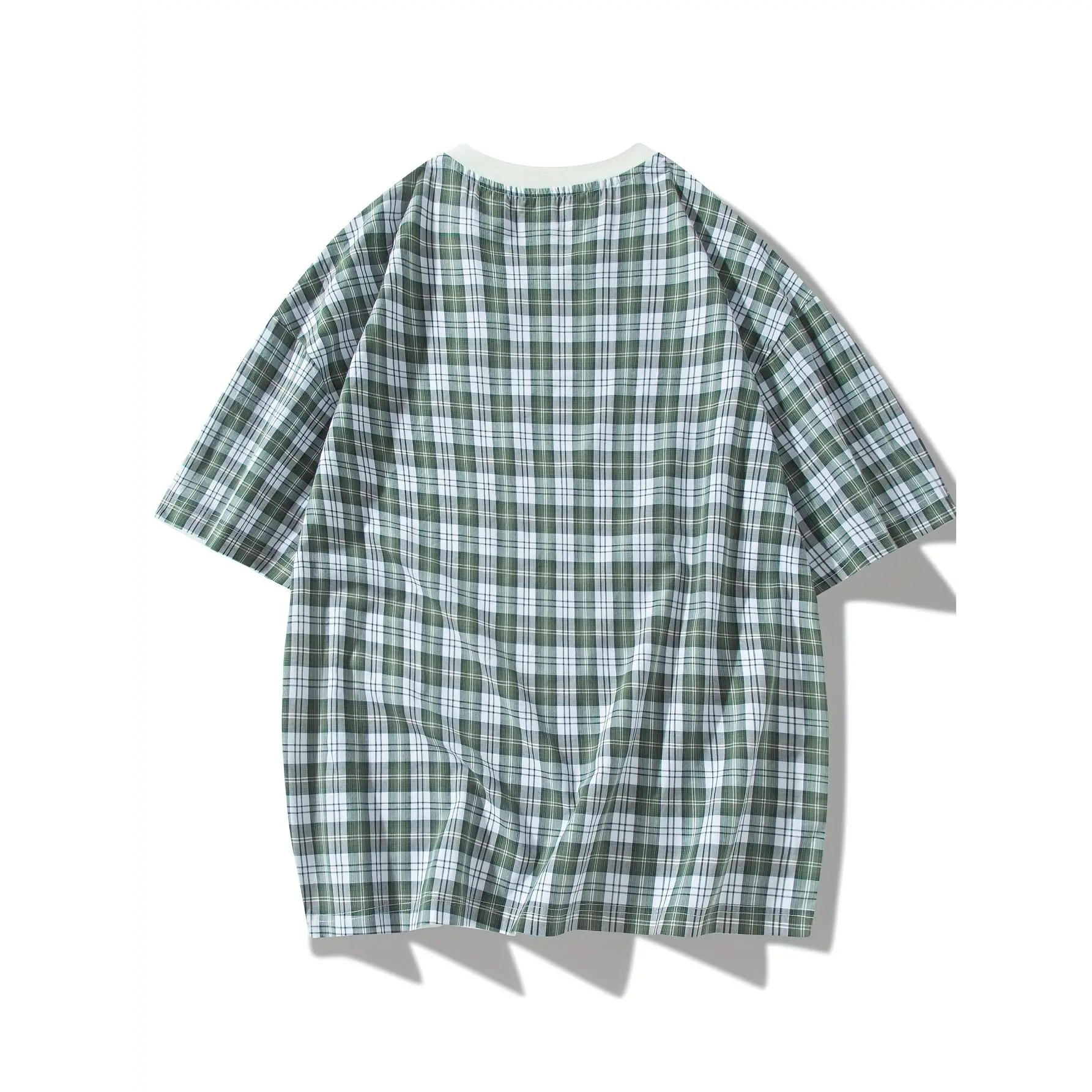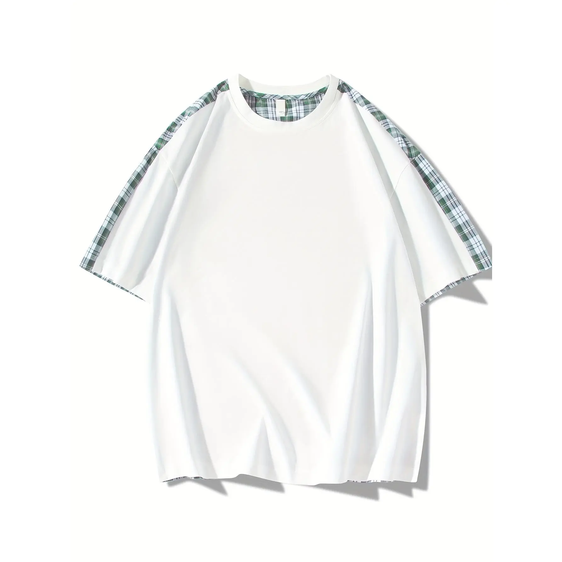 NewBdhjydb Men'S Casual Plaid & Solid Color T-Shirt - Short Sleeve, Round Neck, Lightweight Polyester Blend, Summer Streetwear with Contrast Sleeves, White with Brown/Beige/Black/White Check Pattern, Perfect for Casual Attire, Everyday Tshirt| Contrast