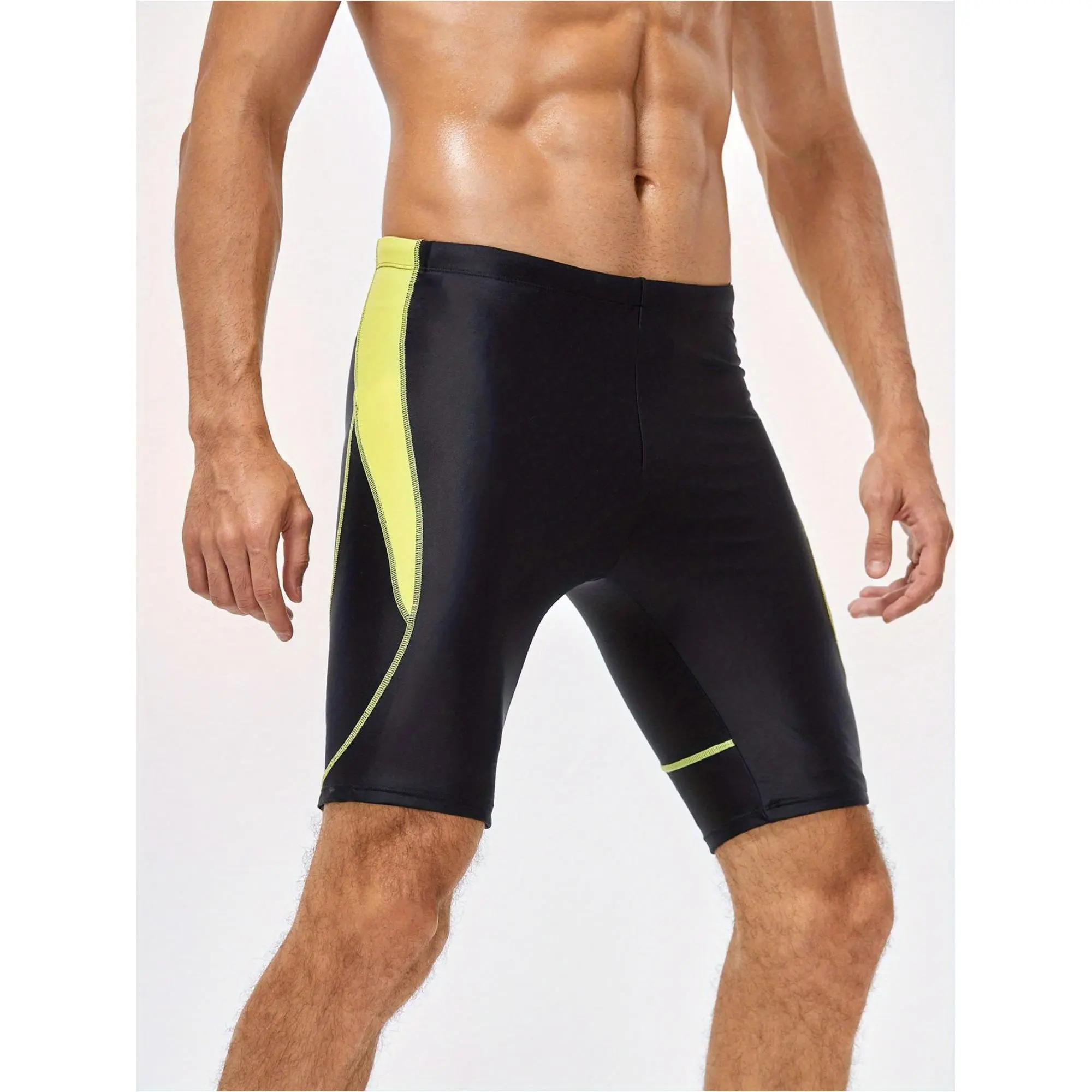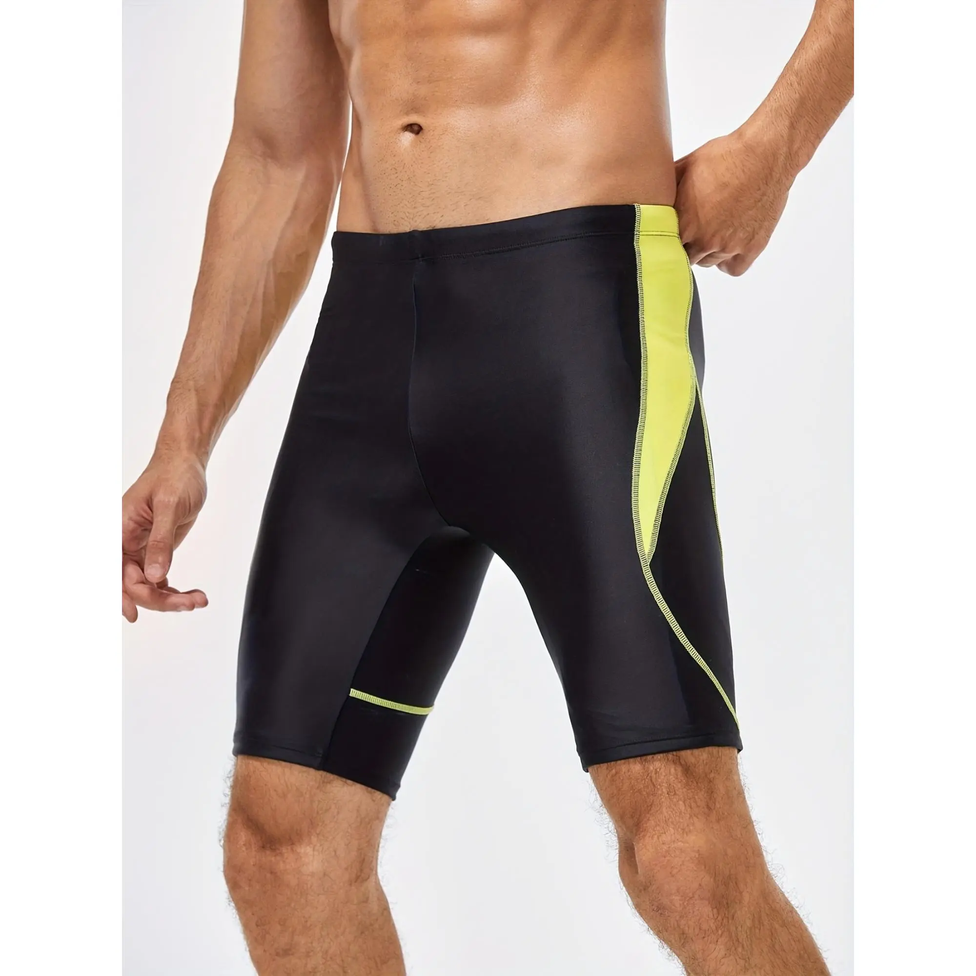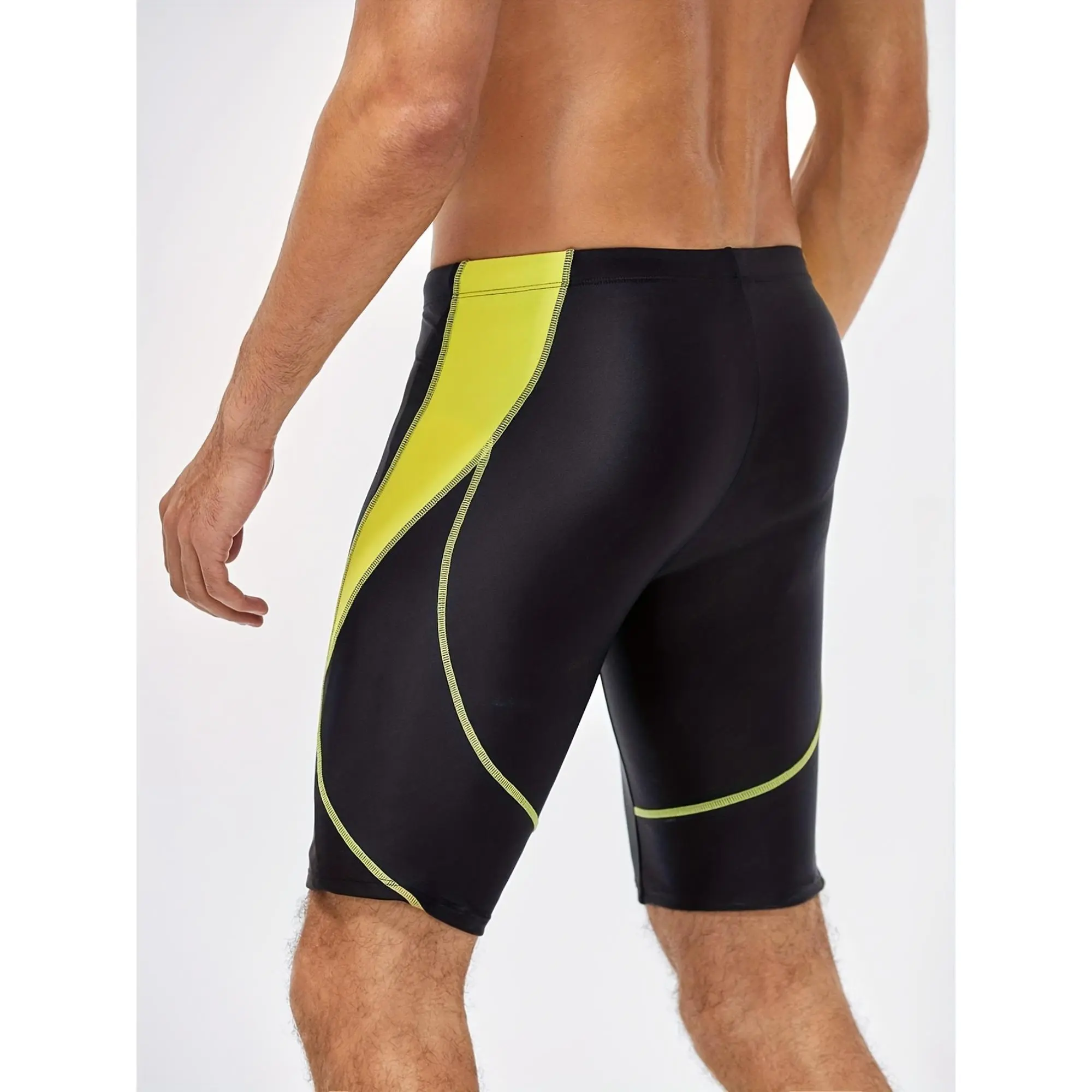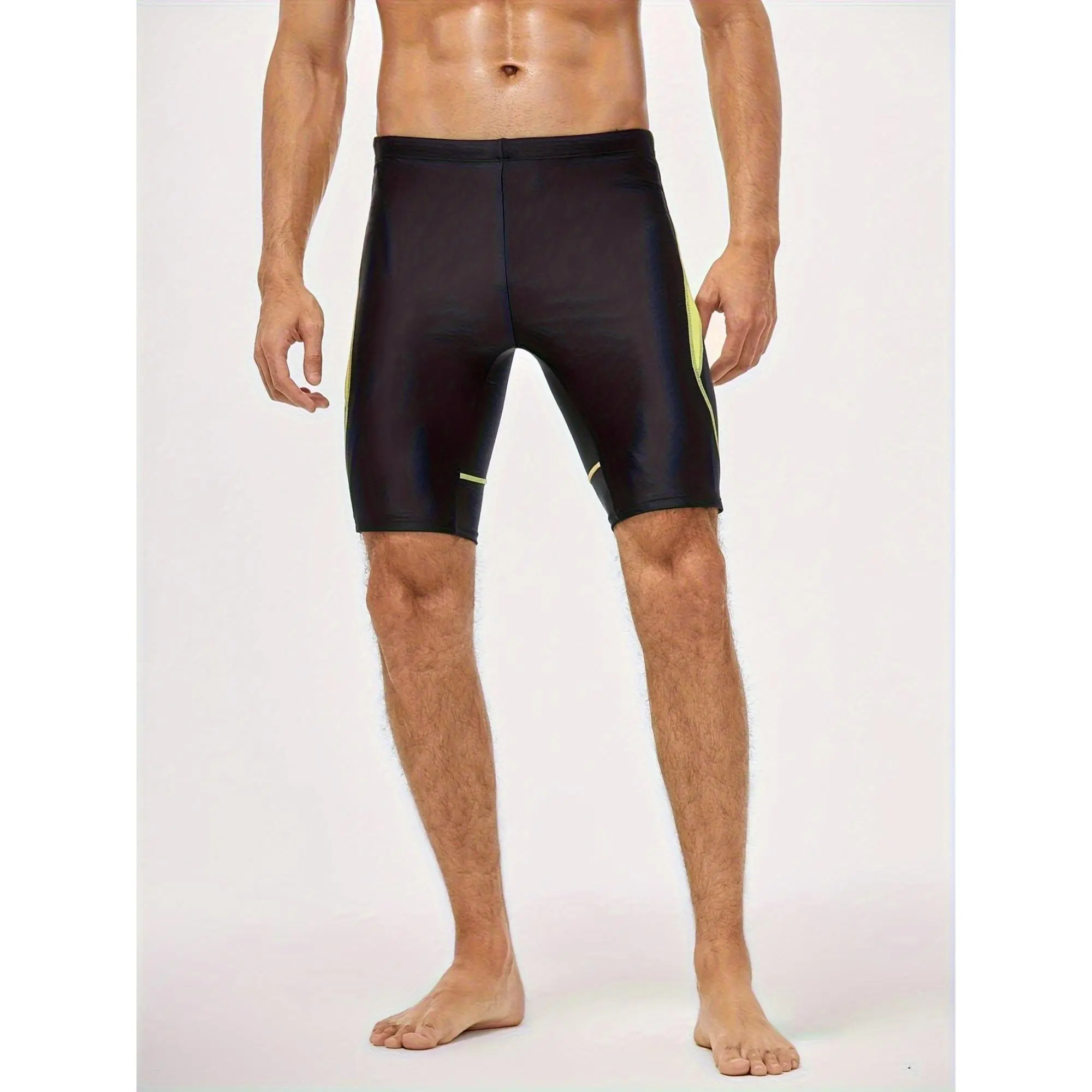 NewBdhjydb Men'S High-Elasticity Swim Trunks - Athletic Swimming Shorts with Contrast Color Accents, Black & Yellow, Quick-Dry Fabric for Beach, Pool, and Sports Activities, Swim Trunks, Poolside Apparel, Sleek Swimwear, Durable Swimwear