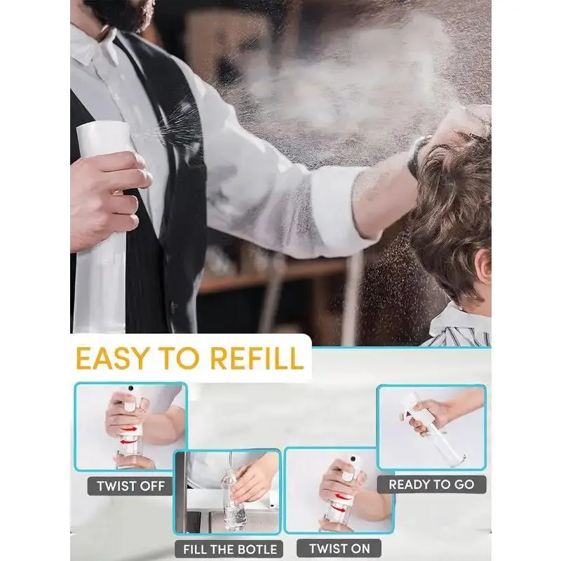 The spray bottle employs advanced pre-compression technology.🌟This ensures a consistent and enjoyable fine mist spray every time.It delivers a uniform mist for your needs, perfect for various uses.Ideal for professional salon settings, everyday hair and body care, self-tanning, cleaning, disinfecting, pet grooming, plant care, car maintenance, and arts & crafts.🌿