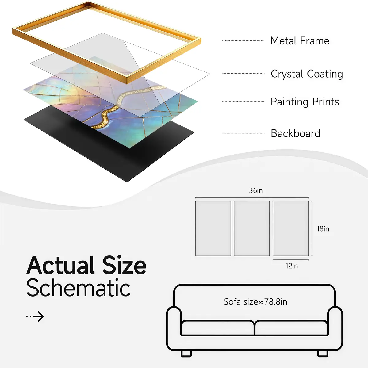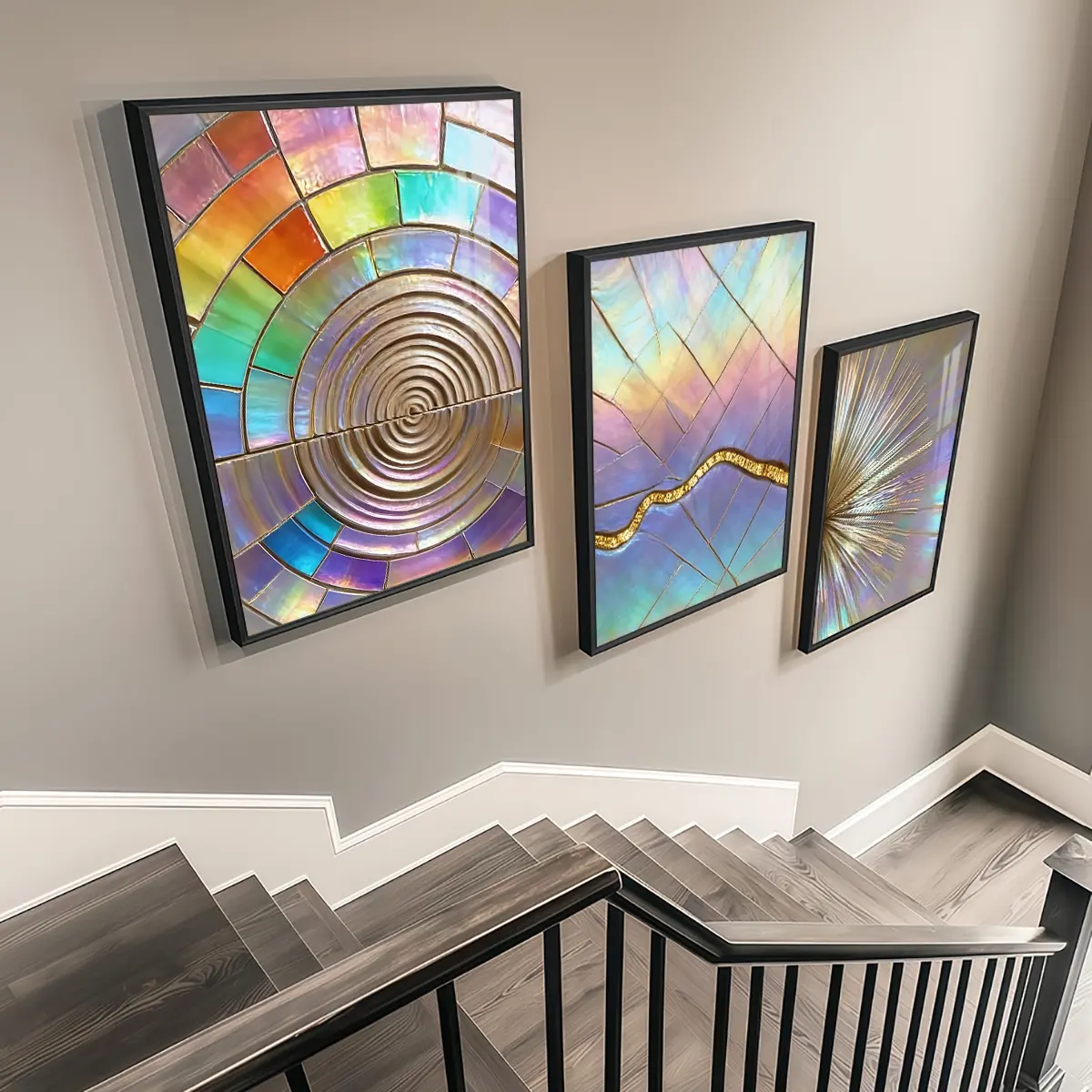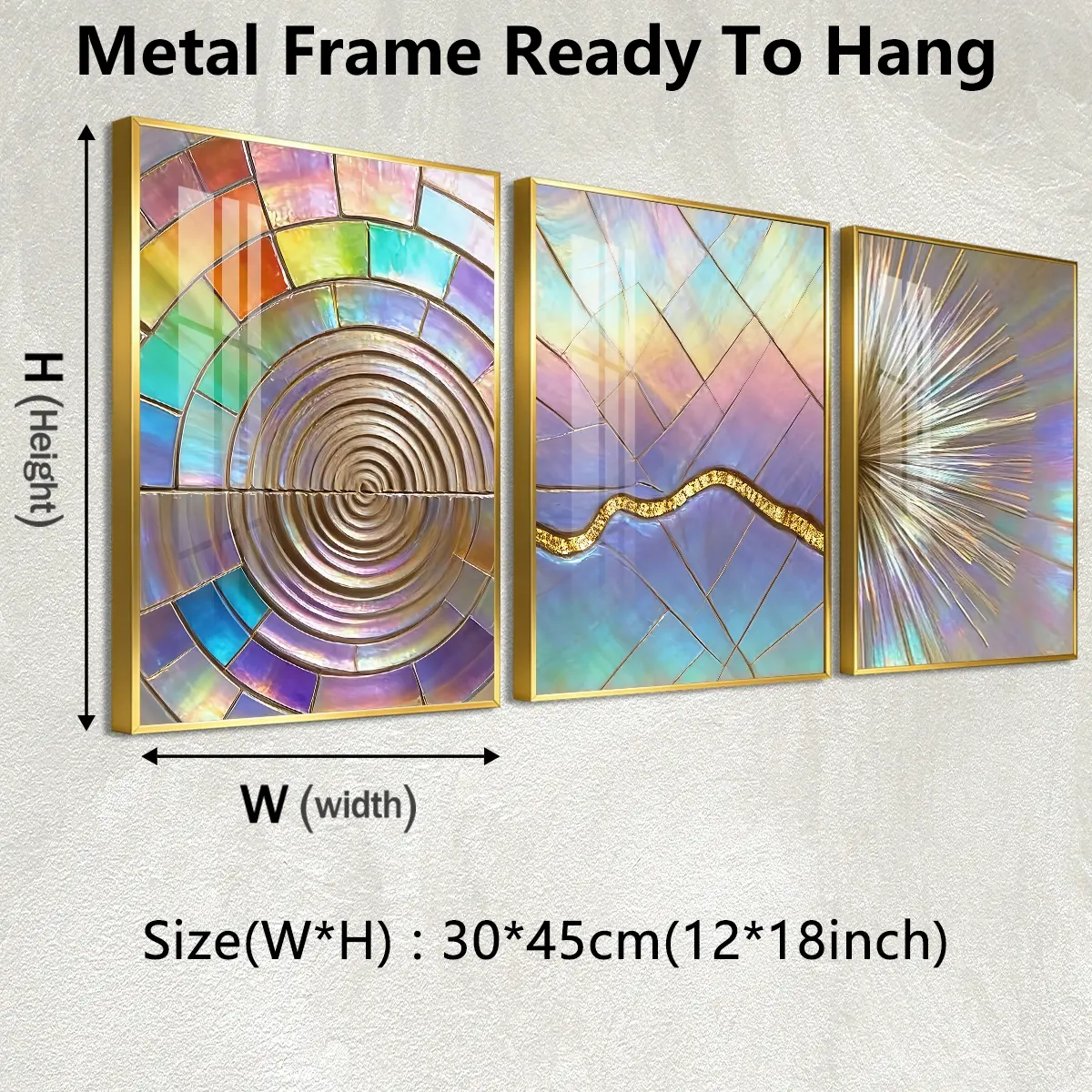 3 Counts Aluminum Alloy Framed Painting, Iridescent Abstract Geometric Art, Home Decoration For Living Room, Bedroom, Office, Restaurant, Hallway Wall Decor, Odorless Print Artwork, Luxury Perfect Gift For Friends And Family