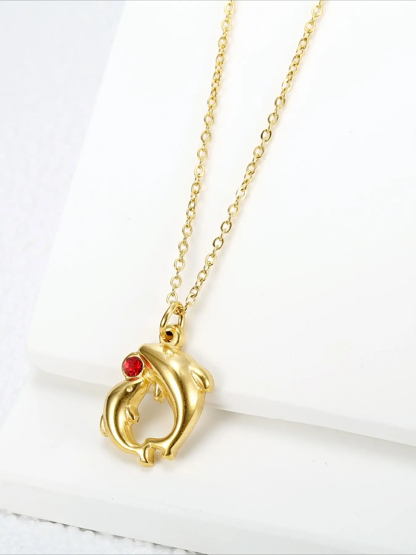 Stainless Steel Double Dolphin Set Zircon Necklace, Three-dimensional Dolphin Shape, High-end Stainless Steel Accessories, Versatile for Daily Use