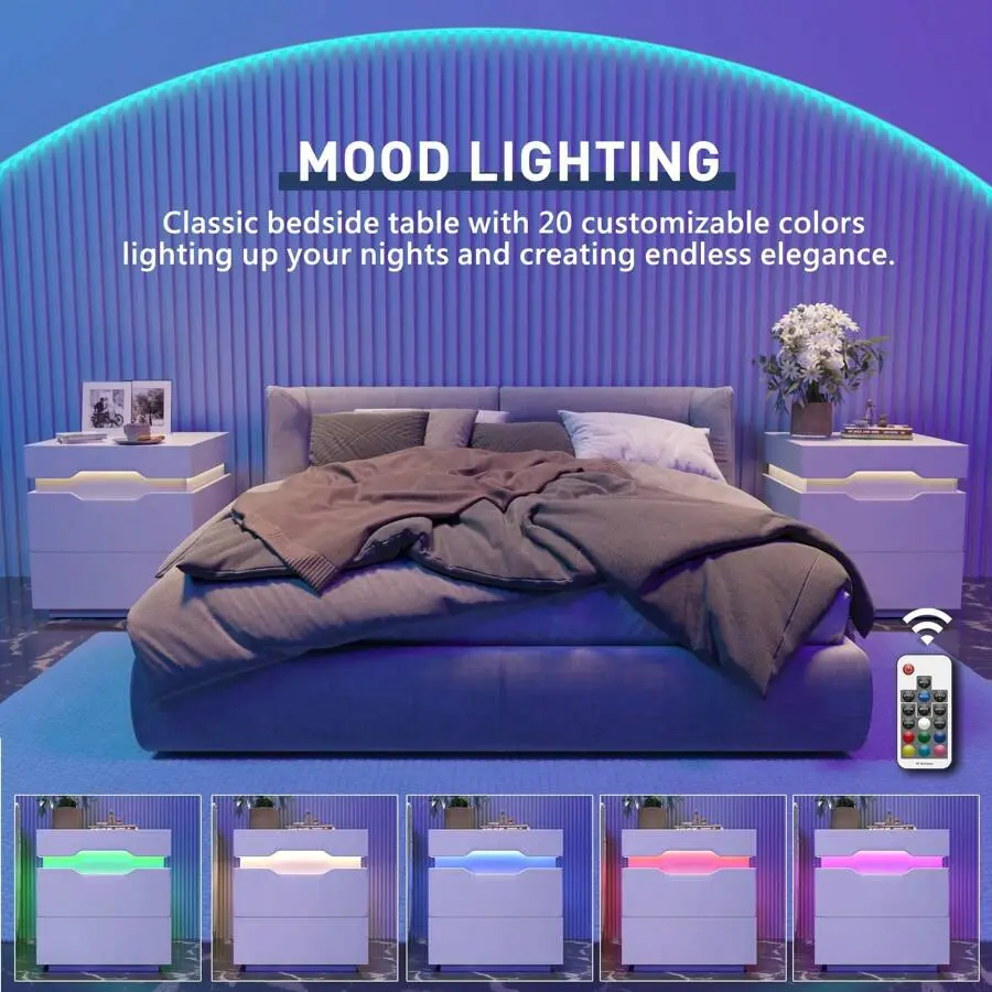 Equipped with an LED strip surrounding the nightstand, it not only provides soft, warm illumination for nighttime use but also offers 20 different color options to switch between.You can easily adjust the color to match your mood or bedroom decor, creating a cozy, pleasant ambiance that elevates your sleeping space.