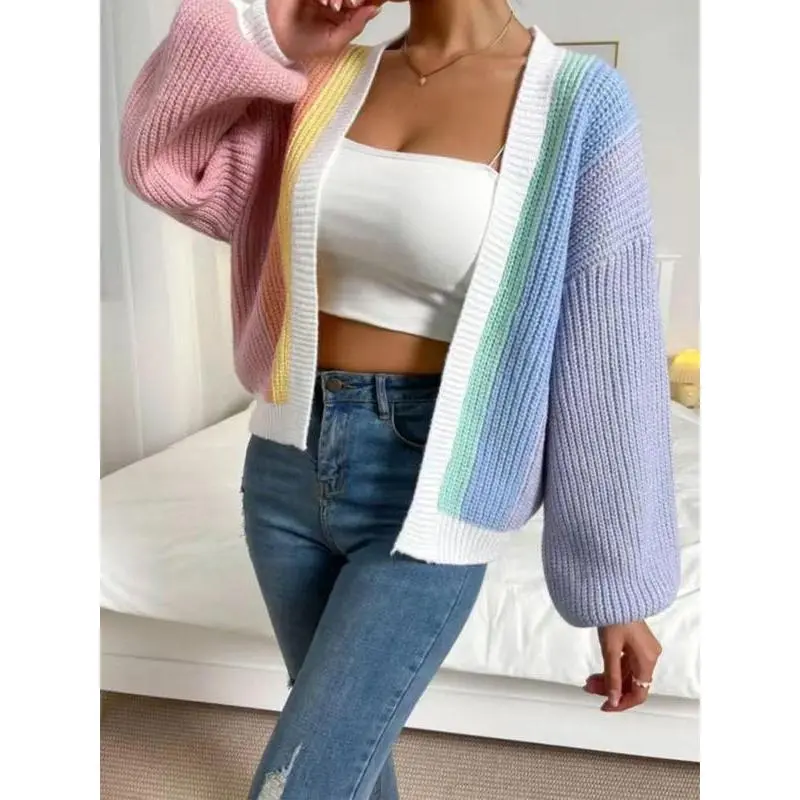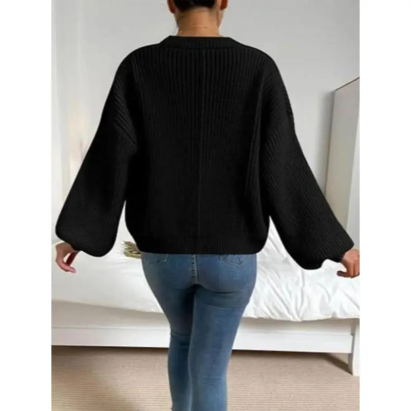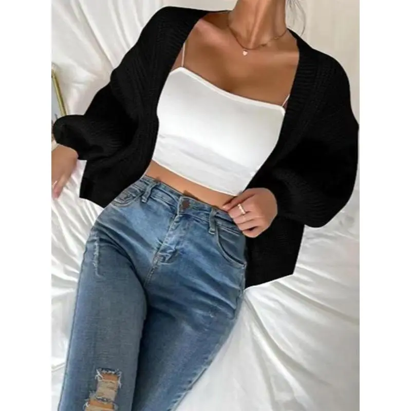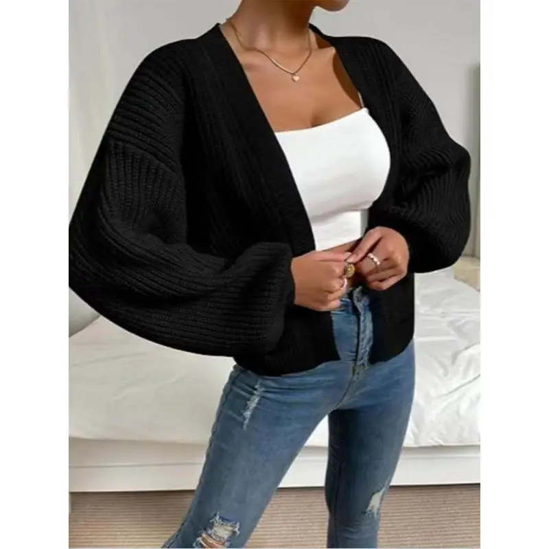 ��Plus Size�� Lantern Sleeve Open Front?Cardigan, Casual Fashion Long Sleeve Cardigan?for Fall & Winter, Women's Plus Size?Knitwear?for Daily Wear