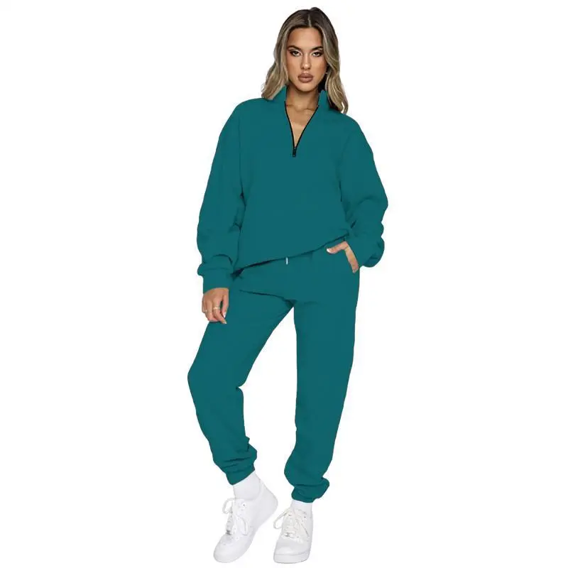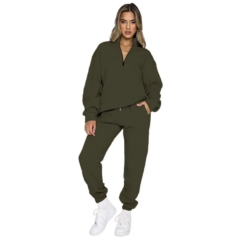 Women's Fashion Zipper Pullover Long Sleeve Sweater Two-piece Set Cotton Fabric