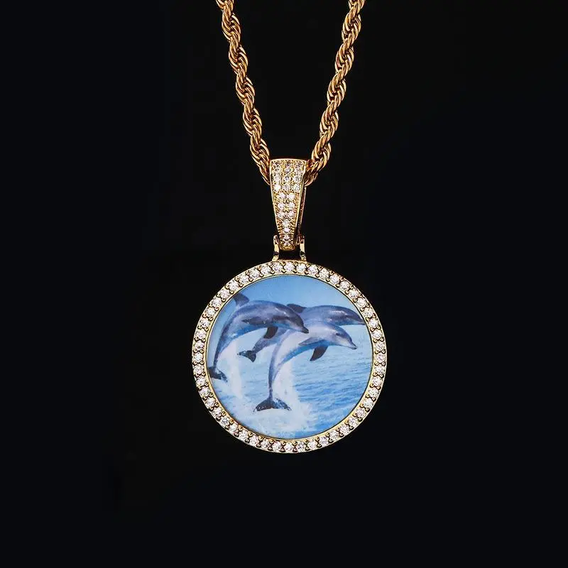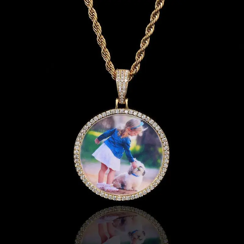 Hip Hop round Photo Necklace Ornament Male Accessories Zircon Photo Frame Photo Pendant DIY Holiday Gift Hypoallergenic