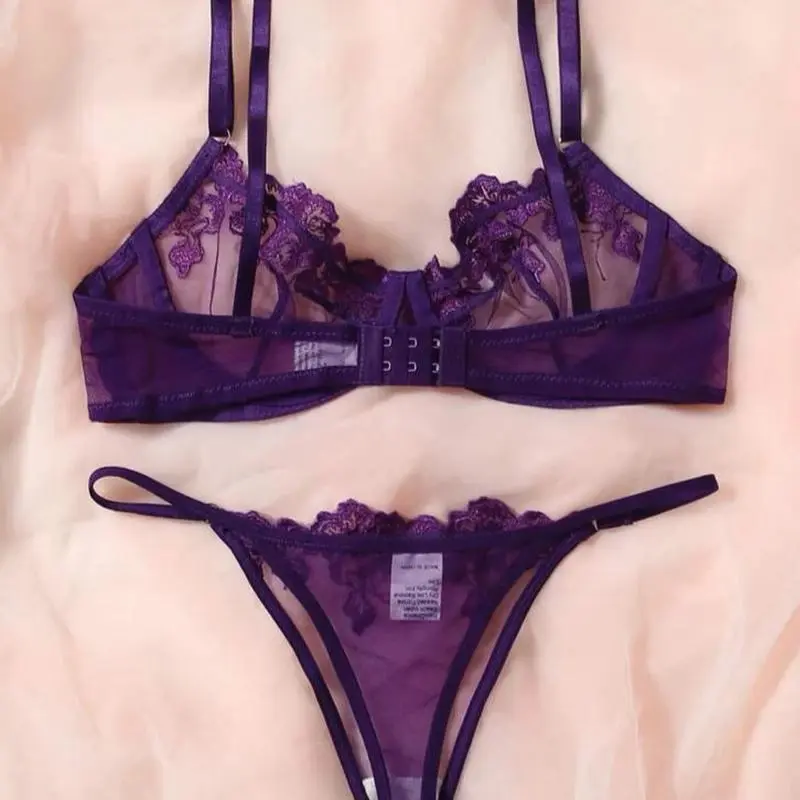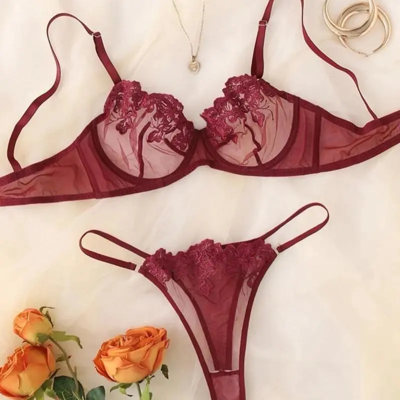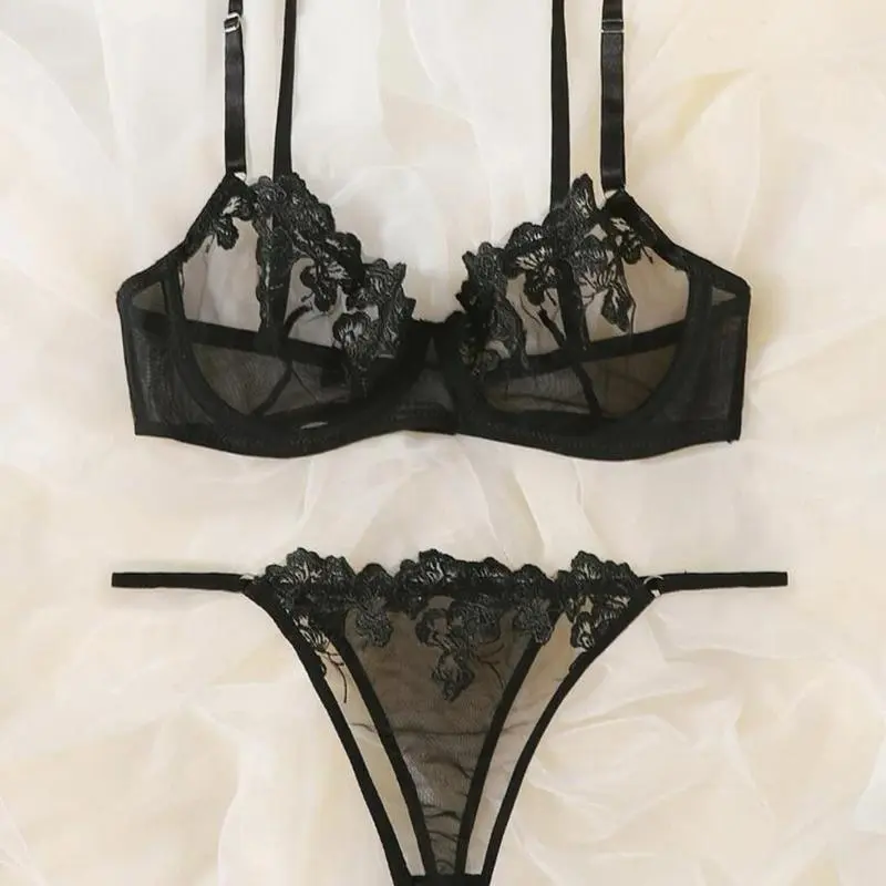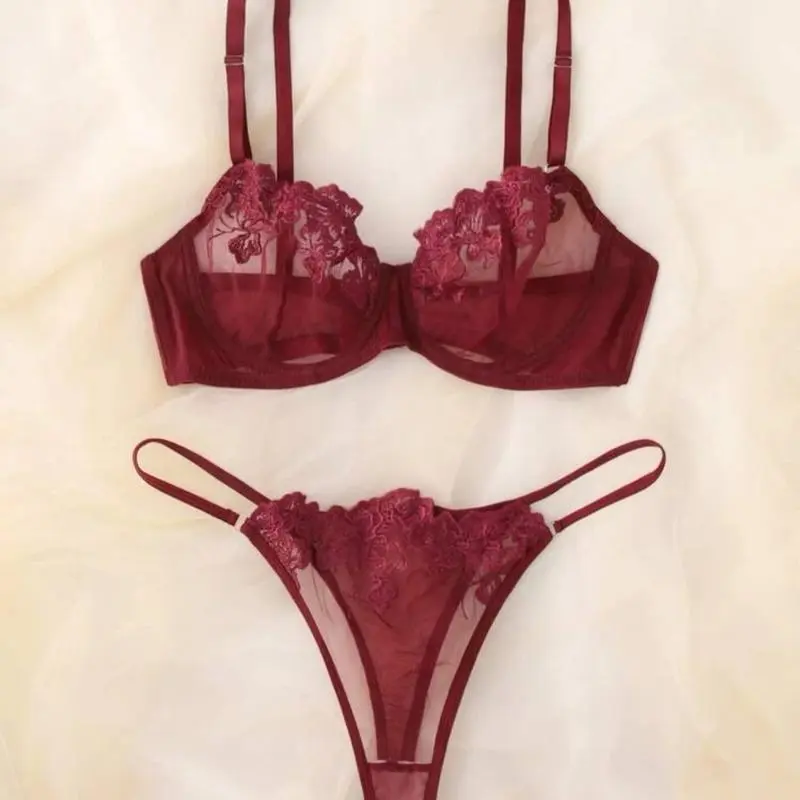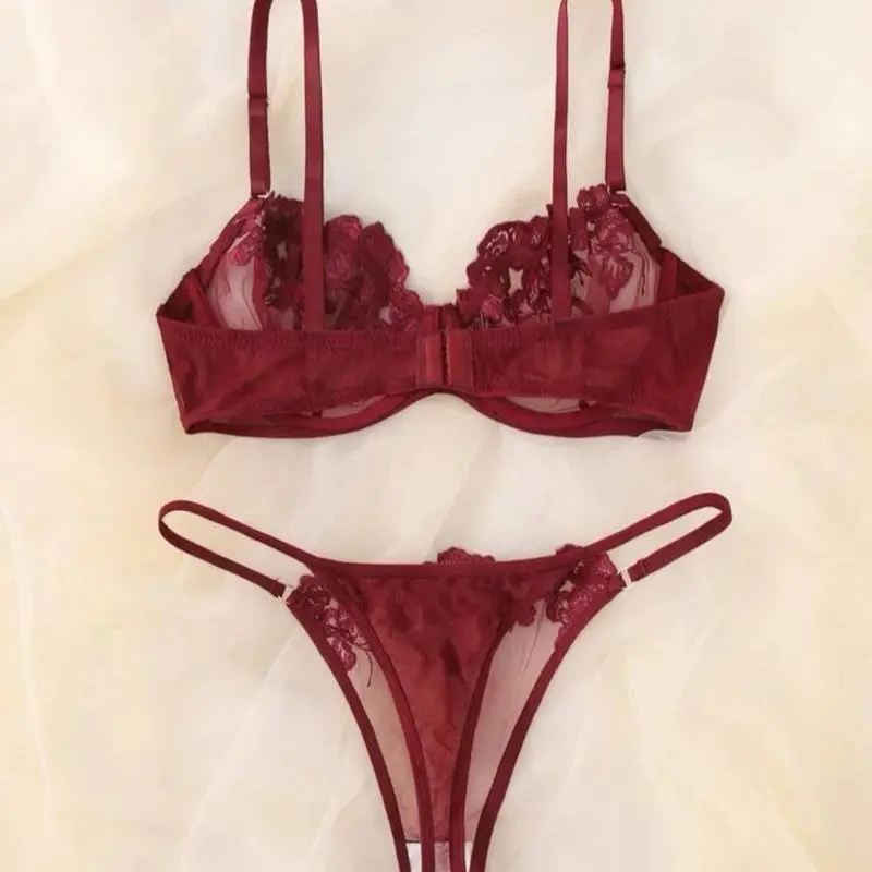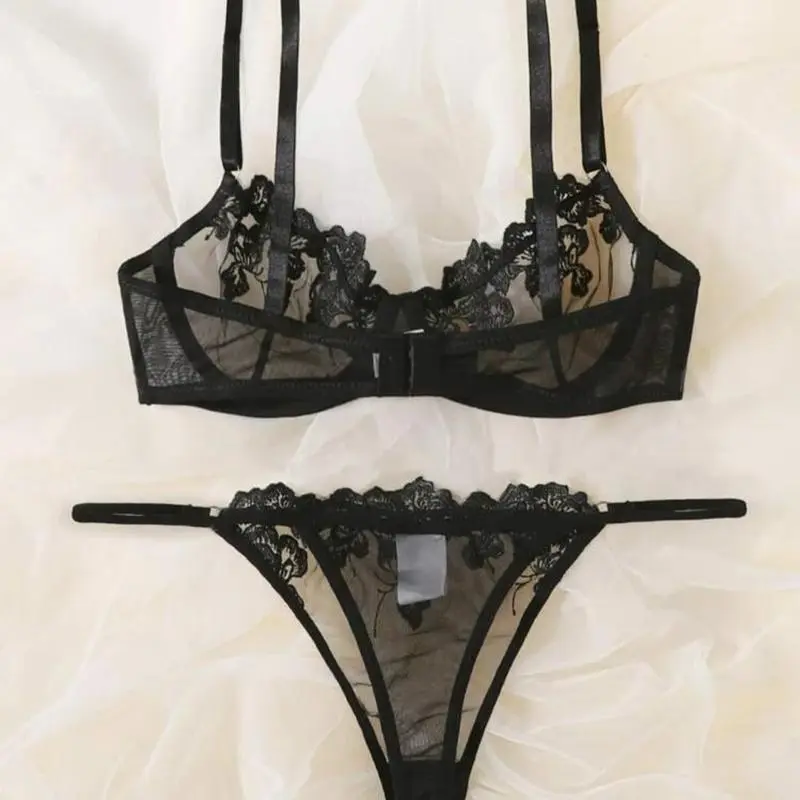 Crafted from delicate lace material, this set boasts intricate details that add a touch of femininity and glamour. The bra features adjustable straps for a customizable fit while the underwear sits comfortably on your hips without digging in or leaving unsightly lines.