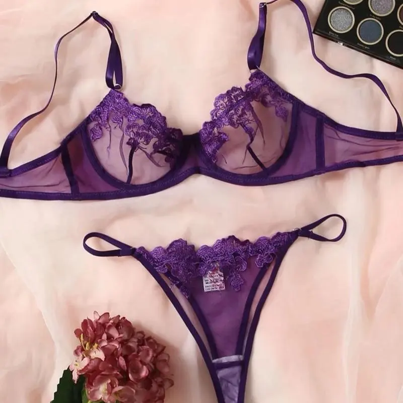 Lace Bra and underwear set for women??s comes in three gorgeous colours black burgundy and purple sexy thong