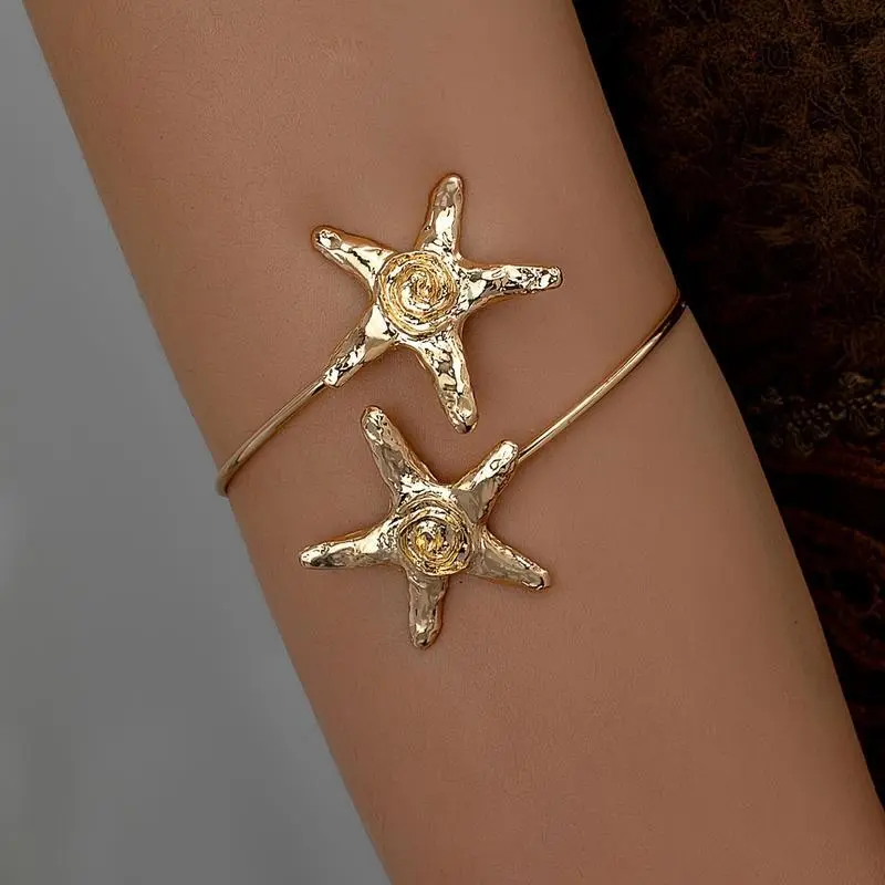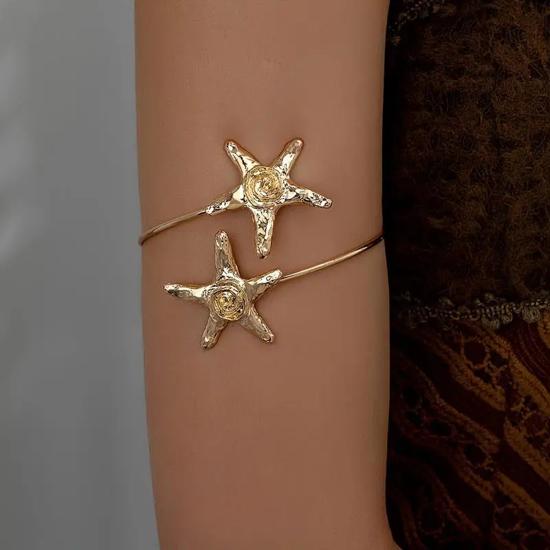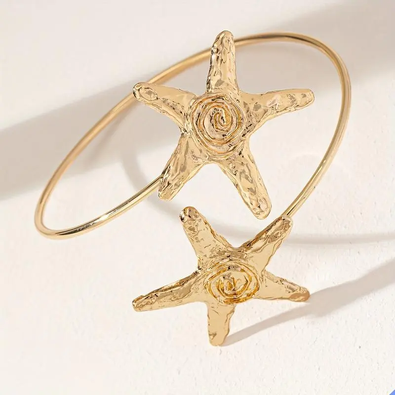 1 Pc Exquisite Elegant Minimalist Golden Swirl Starfish Design Upper Arm Cuff Jewelry for Summer Style, Fashionable Statement Accessory for Women, Dainty and Delicate, Perfect for Beach Vacation, Outdoor Activities, and Everyday Wear
