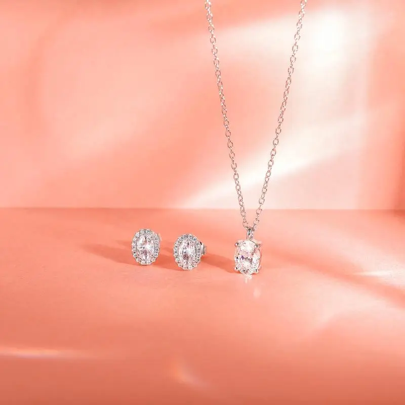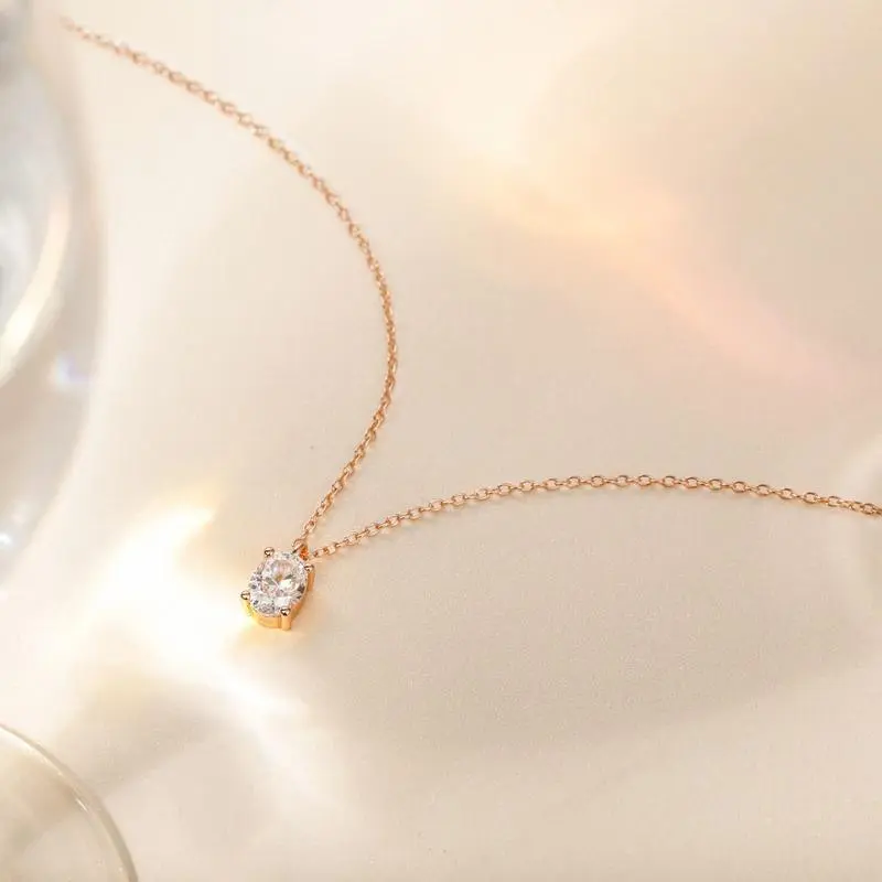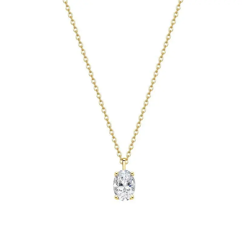 1CT 925 Sterling Silver Gold Plated Necklaces for Women Oval Cut Solitaire CZ Pendant Necklace Christmas gifts