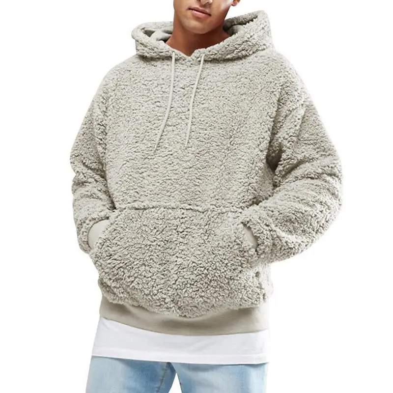 Goranbon Mens Fuzzy Sherpa Pullover Hoodie Sweatshirts Long Sleeve Sport Front Pocket Military Fall Outwear Winter Hooded