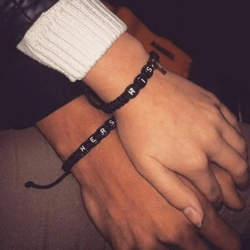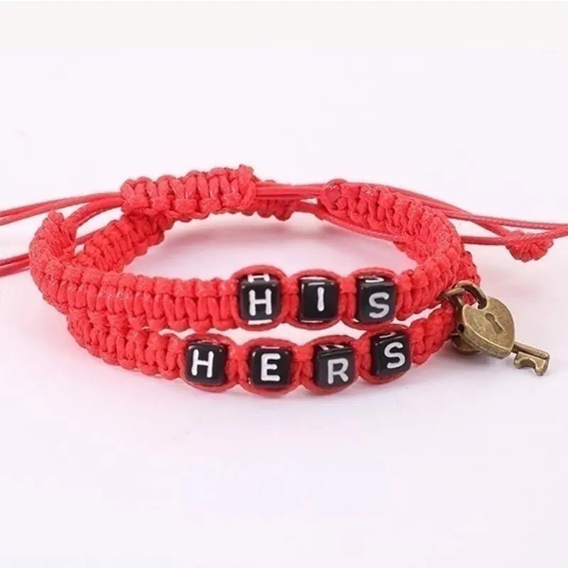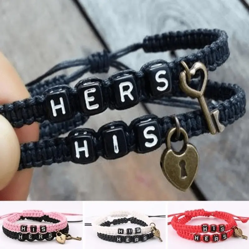 2pcs Polyester Key Lock Bracelet, Preppy Style Jewelry for Couples Lovers Gift