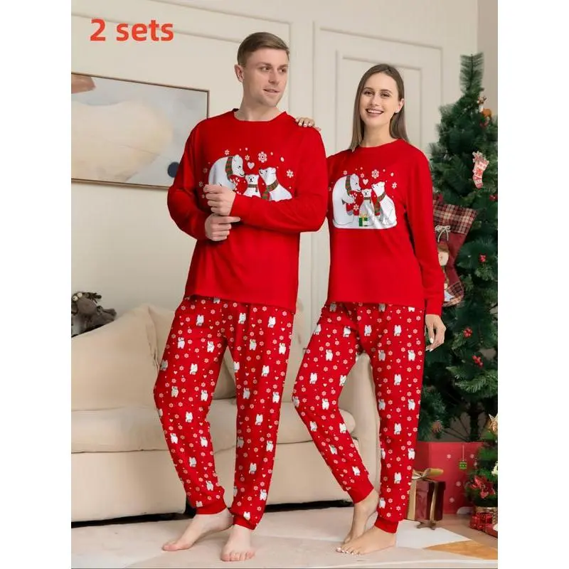 Couple's Christmas Themed Print Pajama Two-piece Set, Casual Comfy Long Sleeve Top & Elastic Waist Pants PJ Set, Men's Sleepwear for Spring & Fall, Loungewear