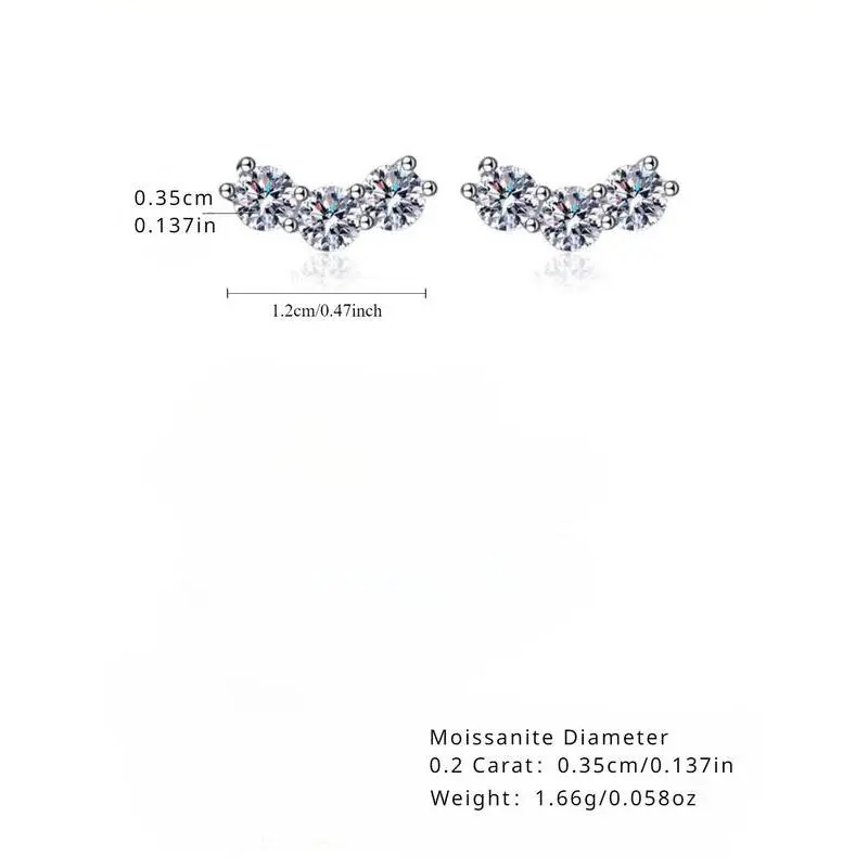 925 Sterling Silver Women's Elegant Moissanite Stud Earrings, Fashionable Earrings for Women & Girls, Trendy All-match & Exquisite Jewelry for Birthday Gift