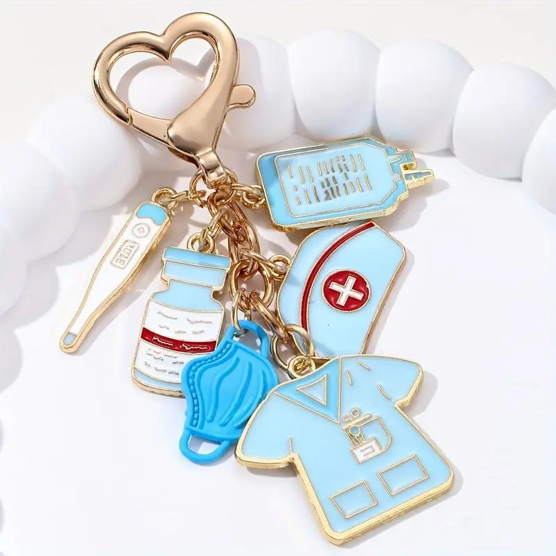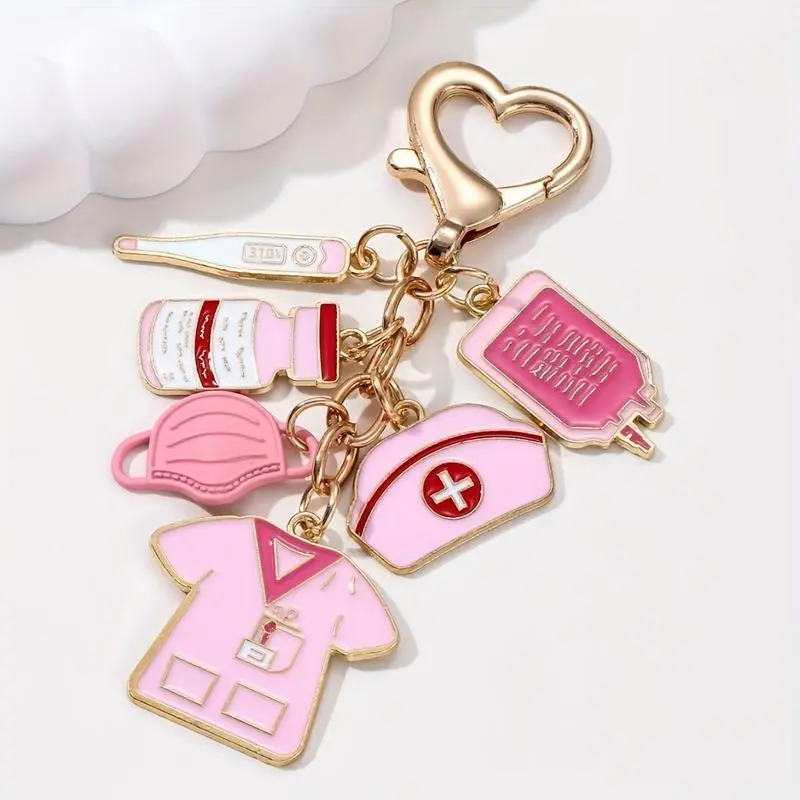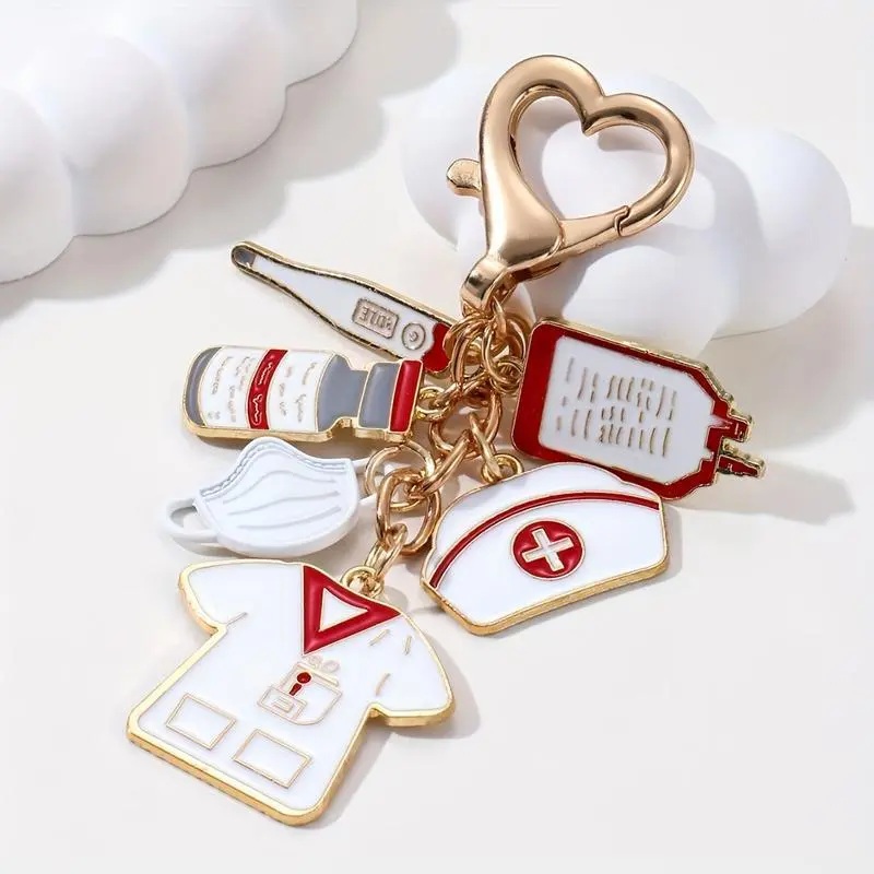 1 Pc Nurse-Themed Charm Keychain, Epoxy Enamel Alloy, Medical Hat, Thermometer, IV Bag, Face Mask, Scrubs, Heart Clasp, For Nurses And Doctors