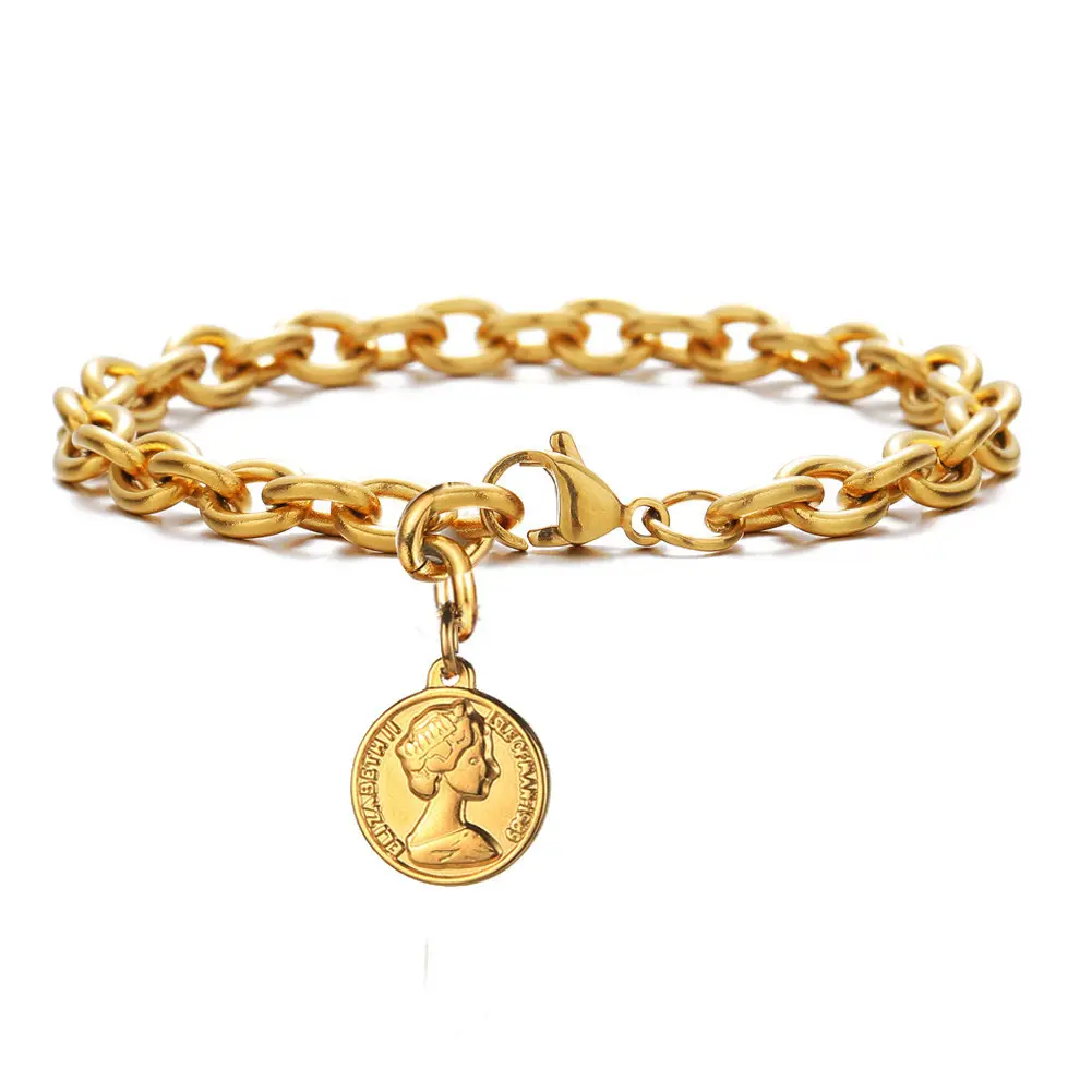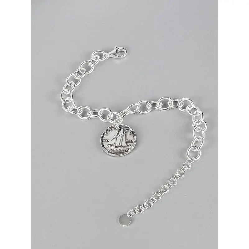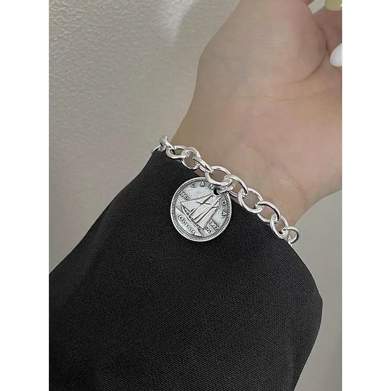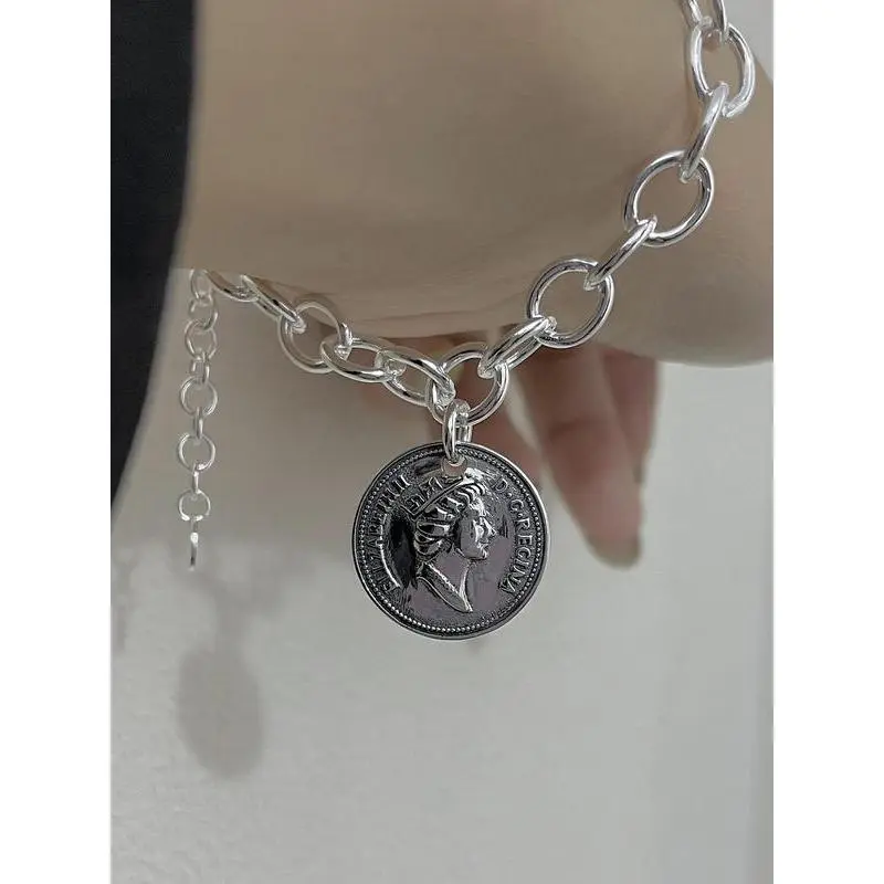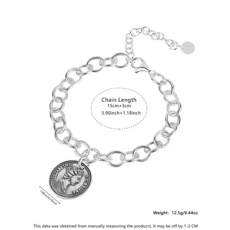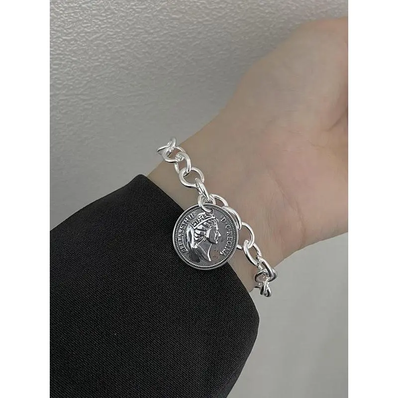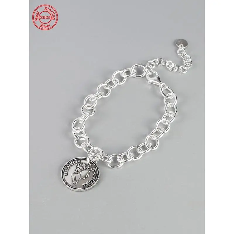 S925 Sterling Silver Vintage Queen Coin Design Bracelet, Fashionable Chain Bracelet for Women & Girls, Trendy All-match & Exquisite Jewelry for Birthday Gift