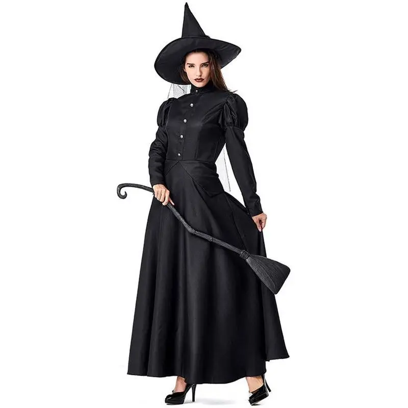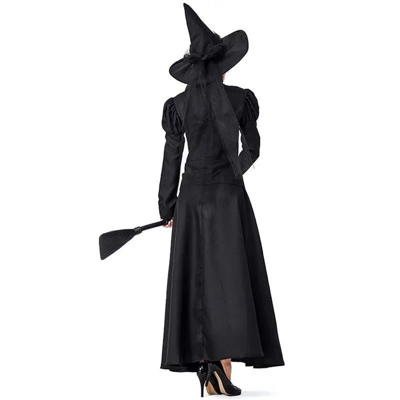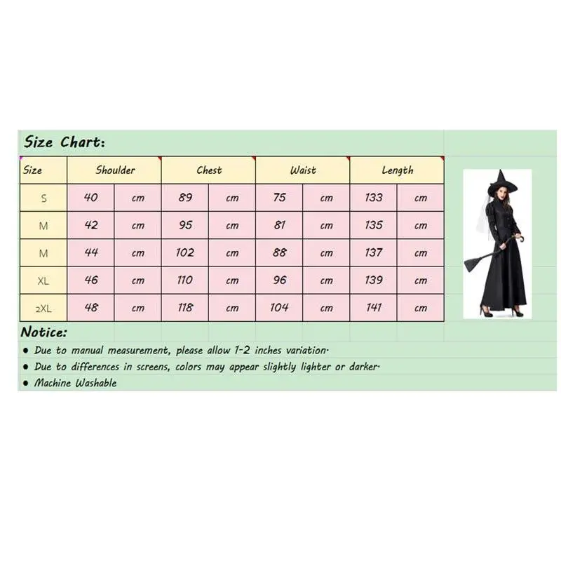 Add some magic to your Halloween with this Women's Wicked Witch Costume. The costume includes a deluxe witchy dress in classic black with a matching hat for the complete spooky look. · Four-Piece Set: This costume includes a witchy dress, petticoat, hat, hat scarf. · Halloween Essential: ideal for Halloween, Costume party, Witch cosplay party, Roleplaying, Dress-up party · Care Instructions: Hand wash to keep this costume in top condition. · Regular Size Type: Designed with regular size type to fit most women comfortably. Dress up as the Wicked Witch of the West or create your own magical character with this versatile costume. The classic black color adds an eerie element that is perfect for any Halloween event. This Women's Wicked Witch Costume is sure to be a hit at any party or gathering and is easy to care for so you can use it again year after year!