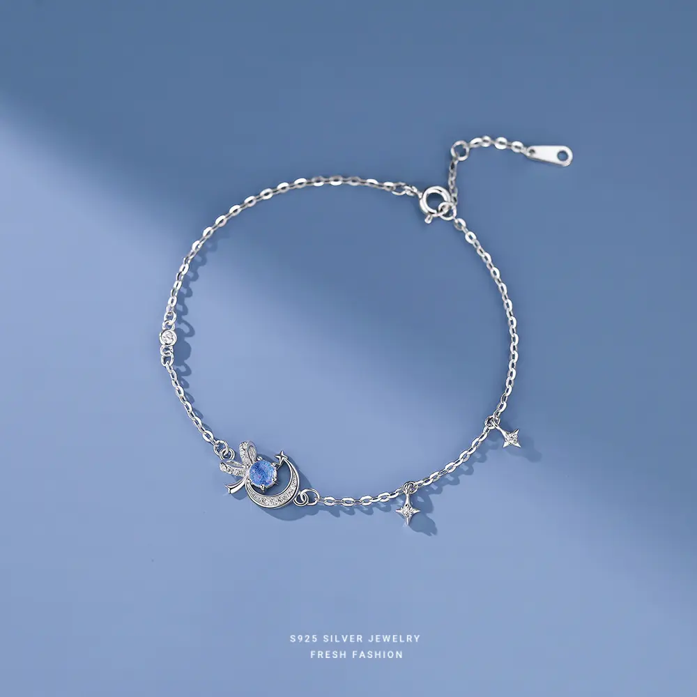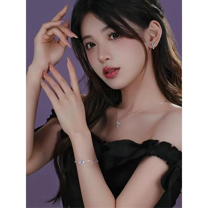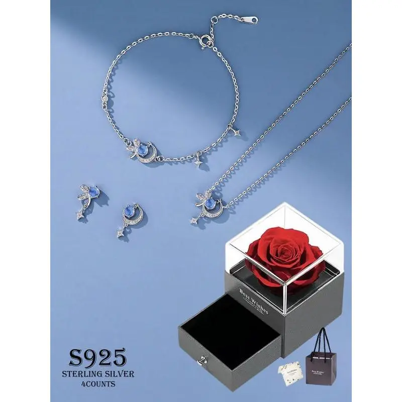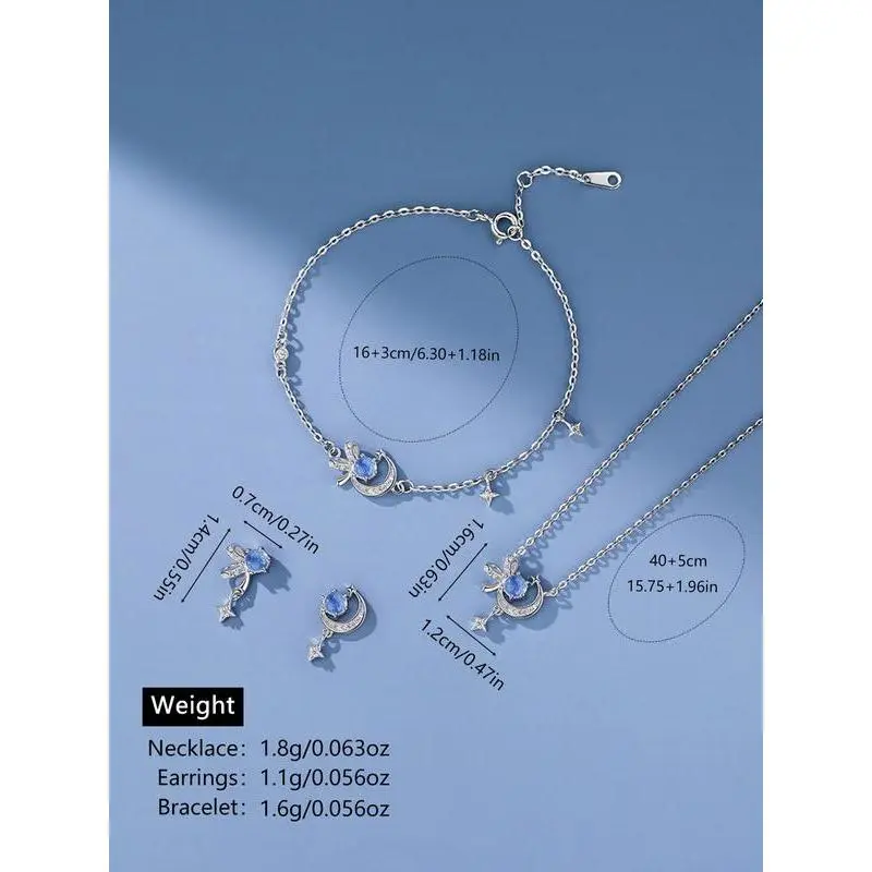 925 Sterling Silver Cute Star & Moon & Butterfly Design Pendant Necklace & Dangle Earrings & Bracelet, Fashion Jewelry for Party, Trendy Exquisite Jewelry for Birthday Gift