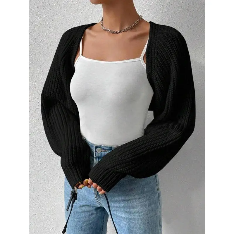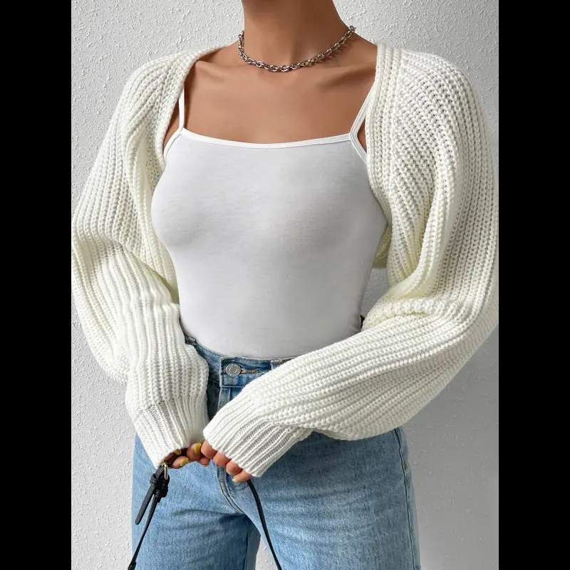 Women's Solid Raglan Sleeve Open Front Crop Shrug Cardigan, Casual Long Sleeve Knitwear for Spring & Fall, Fashion Women's Knit Clothing for Daily Wear