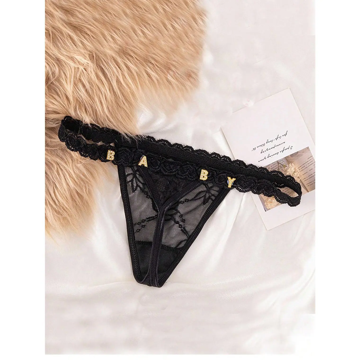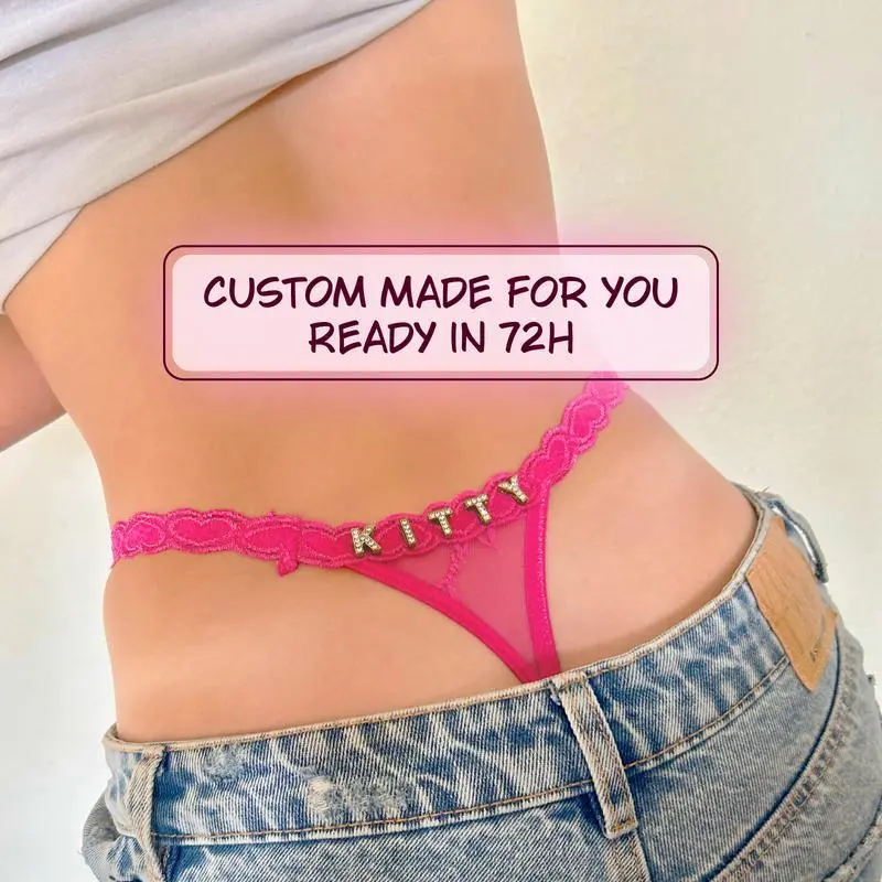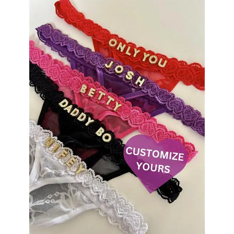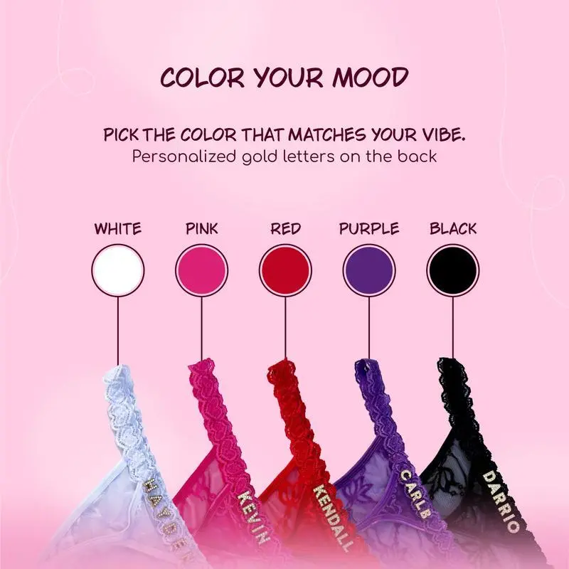Custom Thong with Gold Letters – Personalized Lace String Panties for Women, Custom Name Thong, Breathable Lingerie Gift