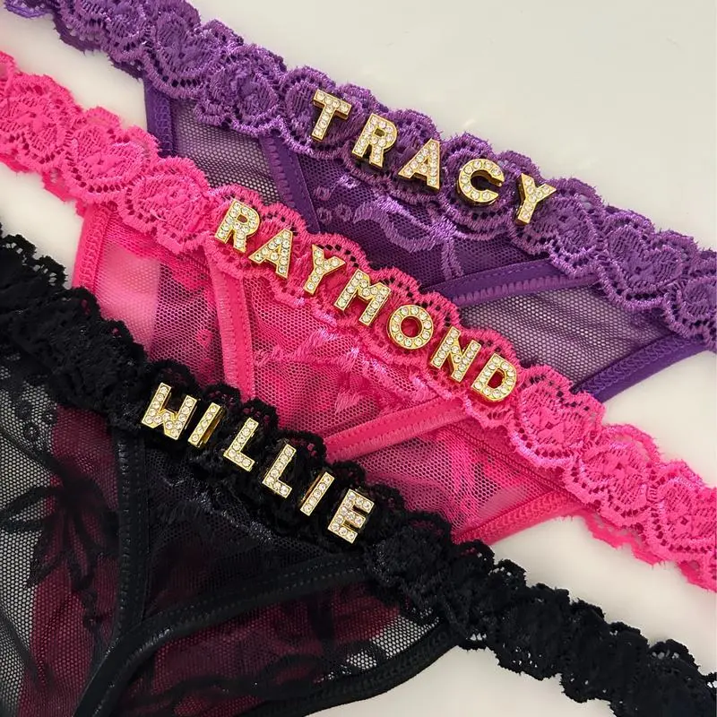 Want to surprise your partner with something truly personal? These custom lace thongs make the kind of gift that feels personal and unforgettable. Perfect for a birthday, honeymoon, anniversary, Valentine’s Day, Halloween, or Christmas — or any moment that deserves something special. Each thong is handmade to order, with gold alloy letters on the back — it could be your boyfriend’s name, your husband’s initials, a sweet nickname, or a phrase only you two know. The message is completely yours. Here’s how to make your own: Confirm your order — we’ll craft it within 72 hours and ship it straight to you. Available in Black, Red, Pink, White, and Purple, each pair has that soft lace stretch and a comfortable, breathable fit that moves with you. Light, flexible, and made to feel as good as it looks — this custom string thong turns everyday lingerie into something personal, memorable, and completely yours. We craft each piece within 72 hours and ship it straight to you — so you can unwrap your custom thong sooner than you think. Go ahead, make it yours today!