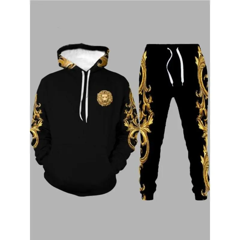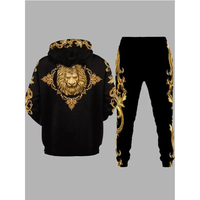 This stylish hooded sweat suit is a must-have for any wardrobe. The Bosses And Dimes Men's Hooded Lion Printed Black/Gold Sweat Suit features a vibrant lion print design in black and gold, perfect for a bold and edgy look. Crafted from soft, durable fabric, this sweat suit will keep you comfortable and looking great.? (Recommended That You Get A Size Larger Than Usual, The Bottoms Run A Bit Small Than Usual)
