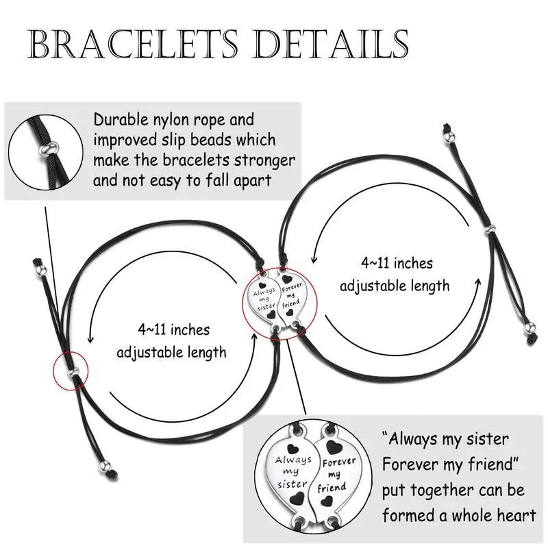 2/3Pcs Best Friend Sister Bracelets Graduation Birthday Anniversary Gifts for Women Girls Heart Matching Bracelets