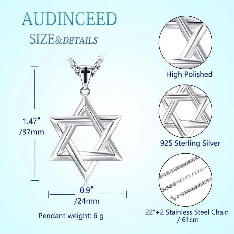 DRINSPER S925 Jewish Star Of David Pendant 925 Sterling Silver Necklace With Stainless Steel Chain Religious Jewelry Gift For Men Women For Christmas Anniversaries