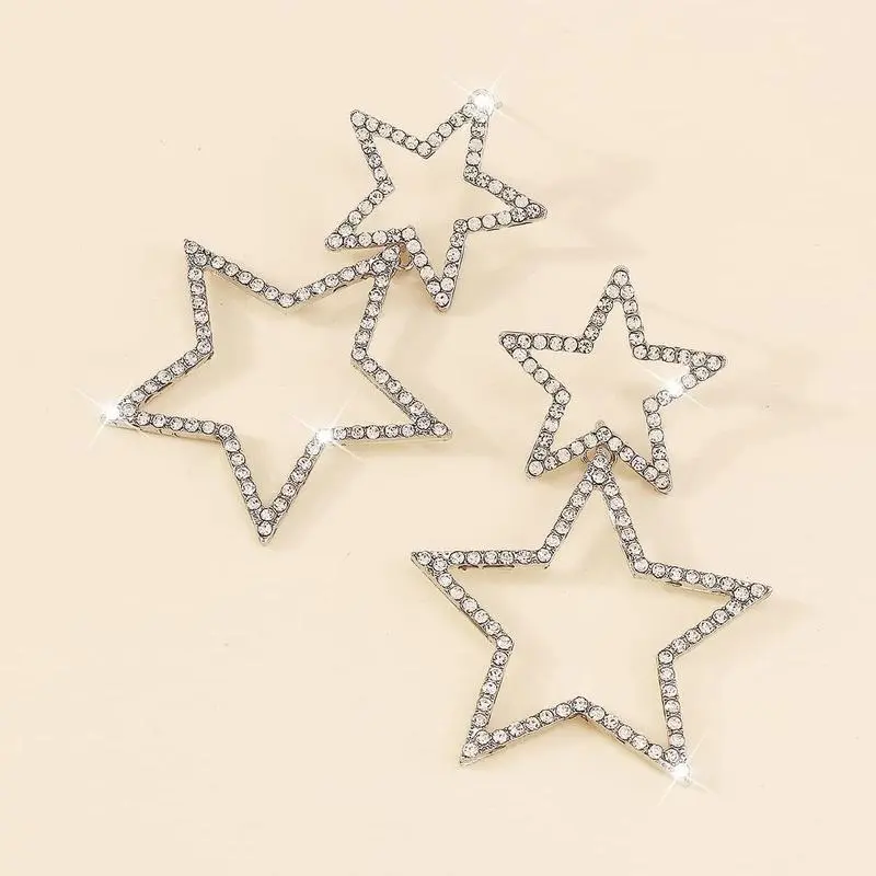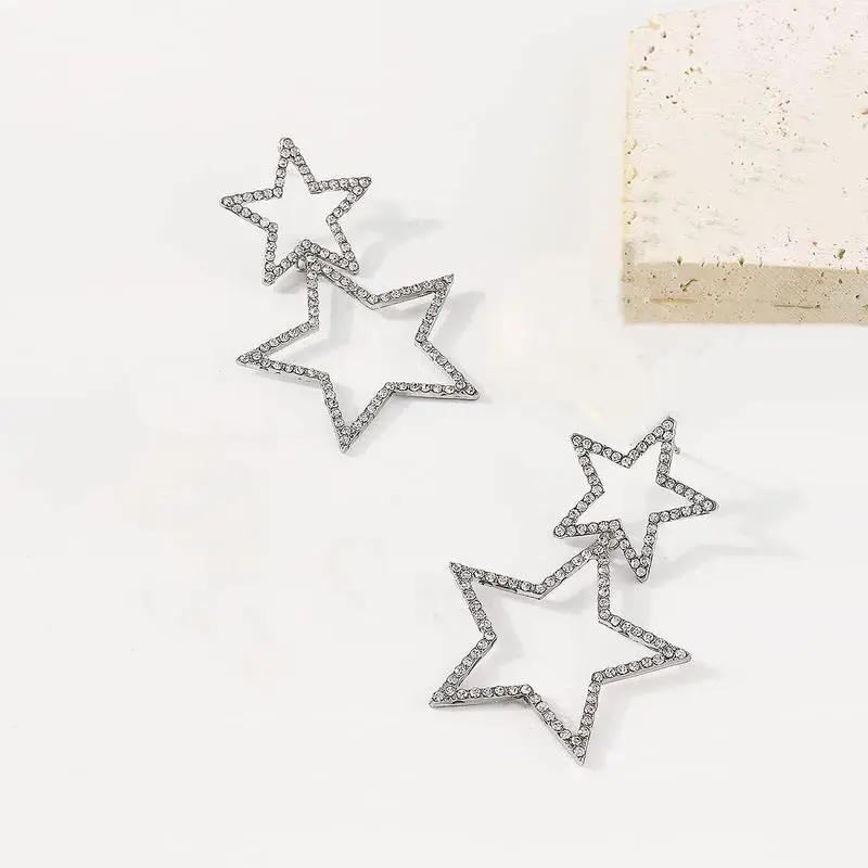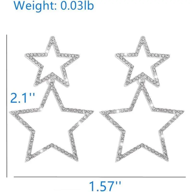 Star Earrings Dangle, Star Earrings for Women, Sparkly Rhinestone Star Hoop Earrings, Double Star Drop Earrings Dangle Jewelry for Women, Girls