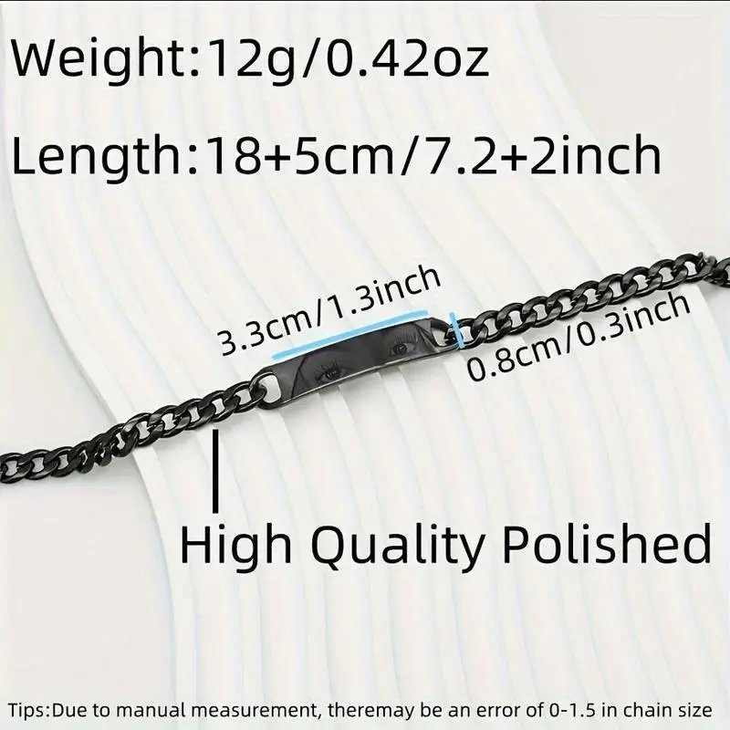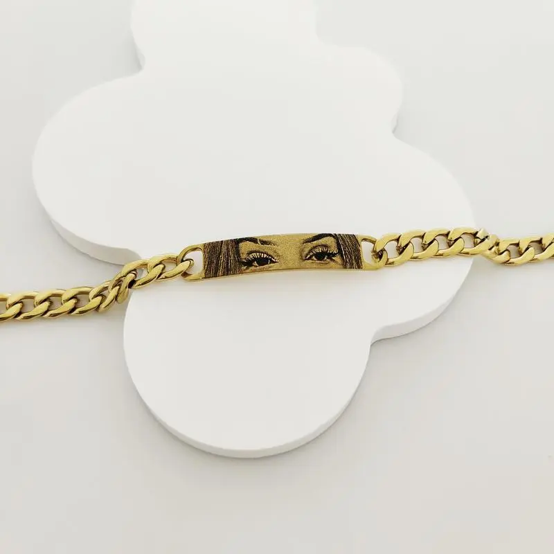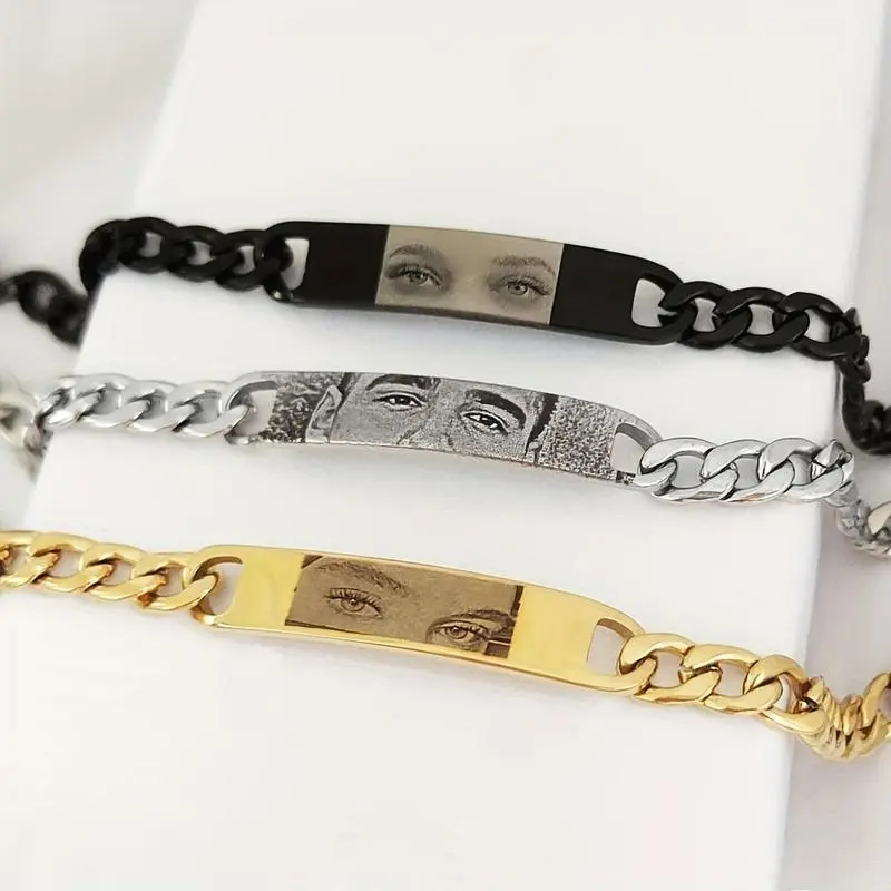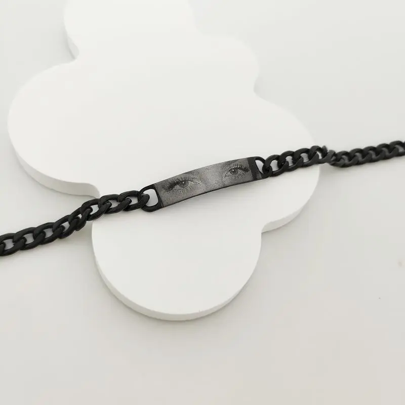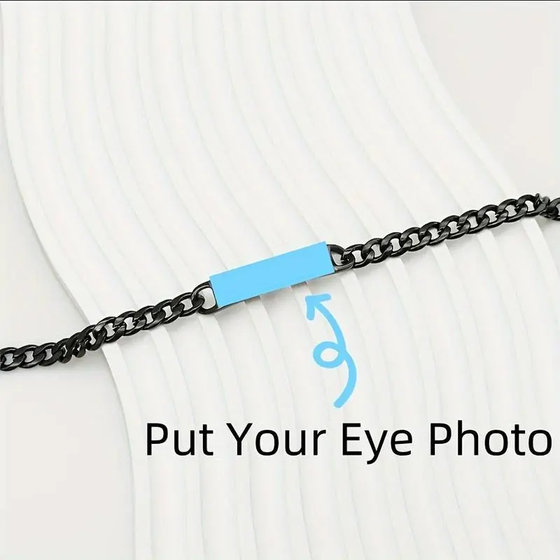 Custom Engraved Eye Picture Couple's Bracelet - Stainless Steel, Punk Style with Flat Oval Chain -Perfect Valentine's Day or Anniversary Gift for Girlfriend or BoyfriendIf no photo is sent the original version will be sent by default (without any pattern)