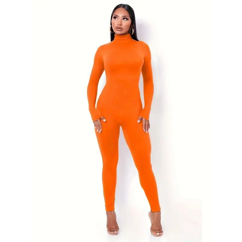 Women's Soft Long Sleeve Turtleneck Solid Stretch Bodysuit with Conservative Elasticity for Casual Wear