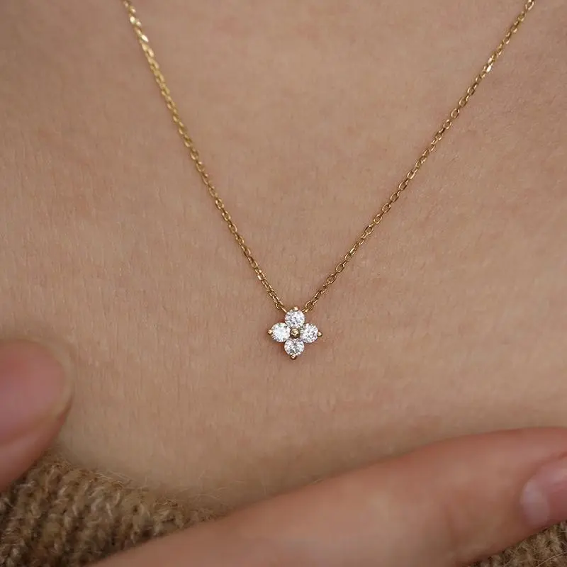 New Design Four Clover Necklace CZ Zircon Gemstone Lucky Four Flower Pendant Necklace Sterling Silver Dainty Simple Chain Choker Jewelry Gifts for Mom Daughter Valentines Day
