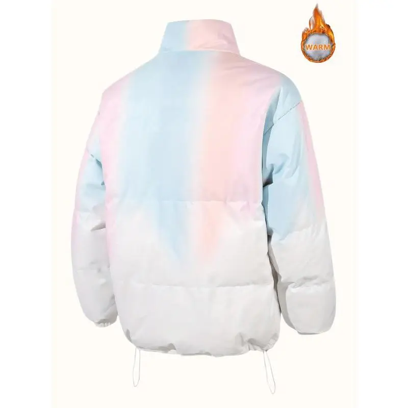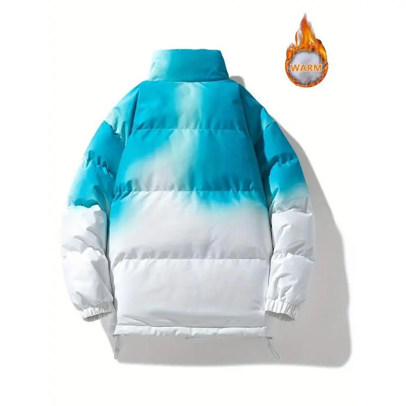 Men's color-matching thick zipper padded jacket, loose down jacket, casual warm pocket funnel collar jacket, suitable for autumn and winter streetwear, cold weather equipment, men's jacket, winter clothing 2025 puffer jacket, men jackets for winter