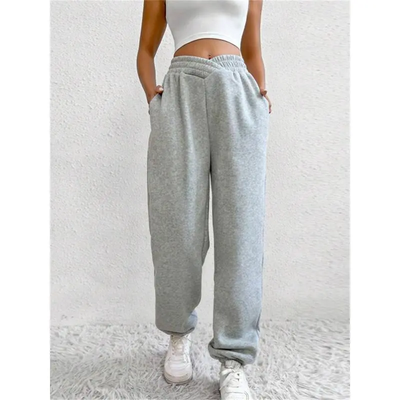 Women's Classic Jogger Pants V Crossover Waist Solid Color Loose Sweatpants Workout Pants Crinkle Loose Pants Culottes