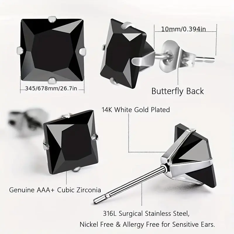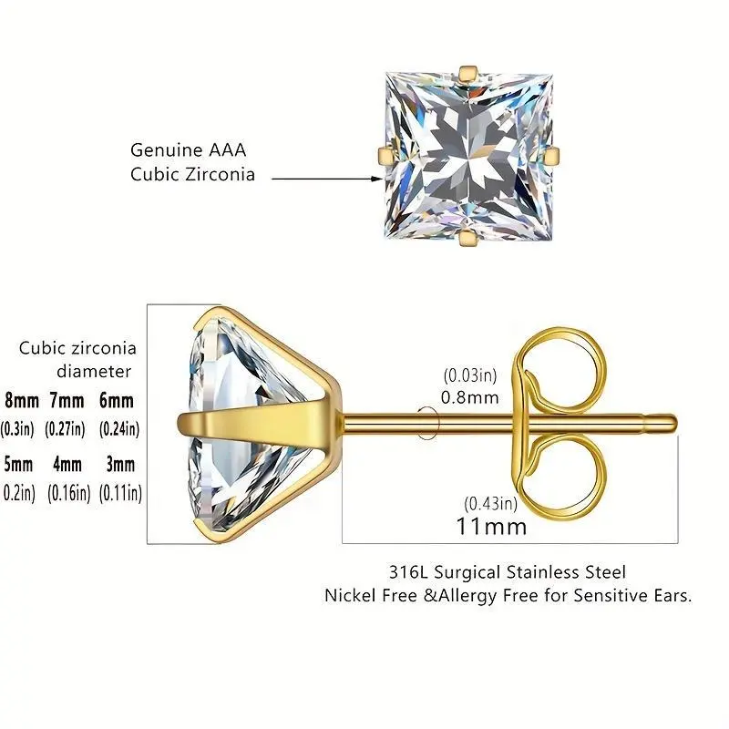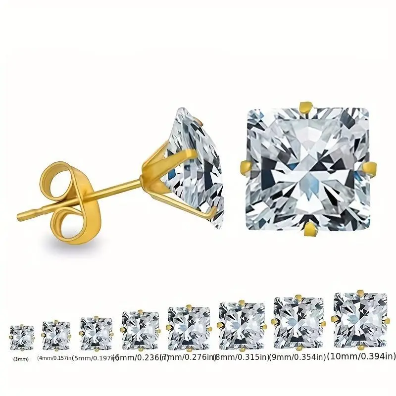 1 Pair Stainless Steel Stud Earrings, 14K Gold-plated Zirconia Earrings For Men, Jewelry Accessories
