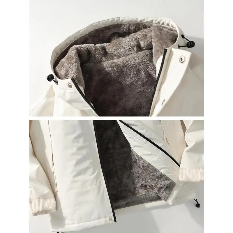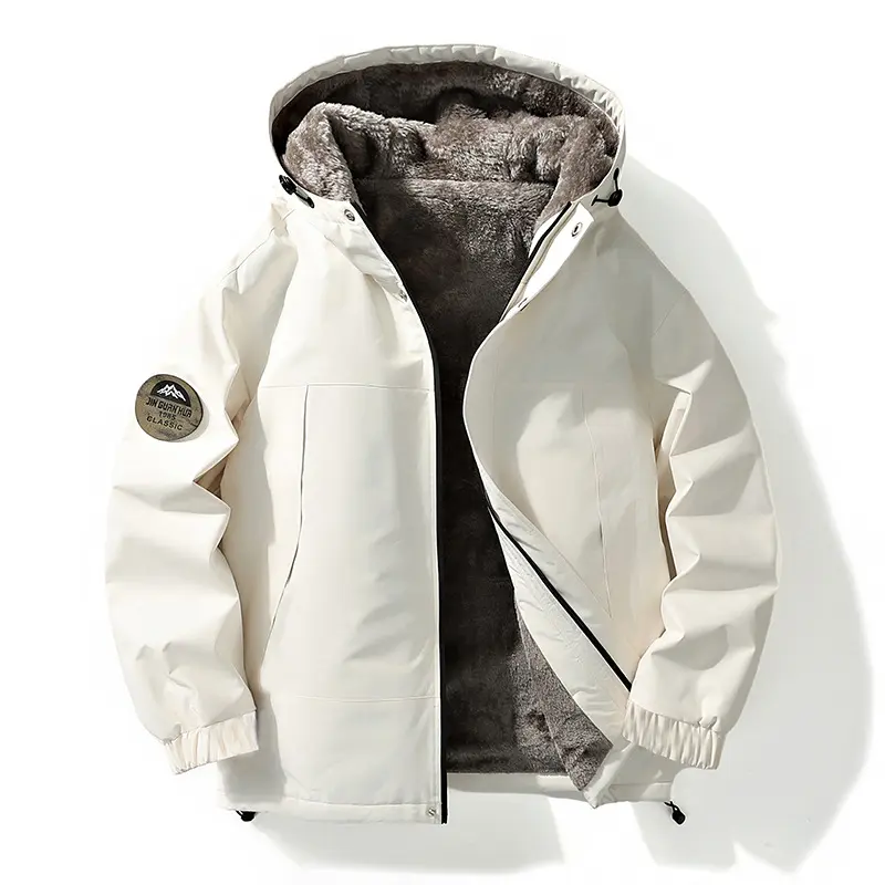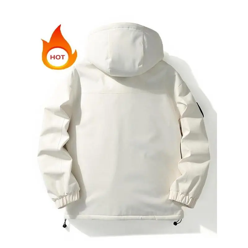 【Plus Size】 Solid Pocket Drawstring Zip Up Hooded Jacket, Casual Long Sleeve Thermal Lined Outerwear for Fall & Winter, Men's Clothes for Outdoor Activities