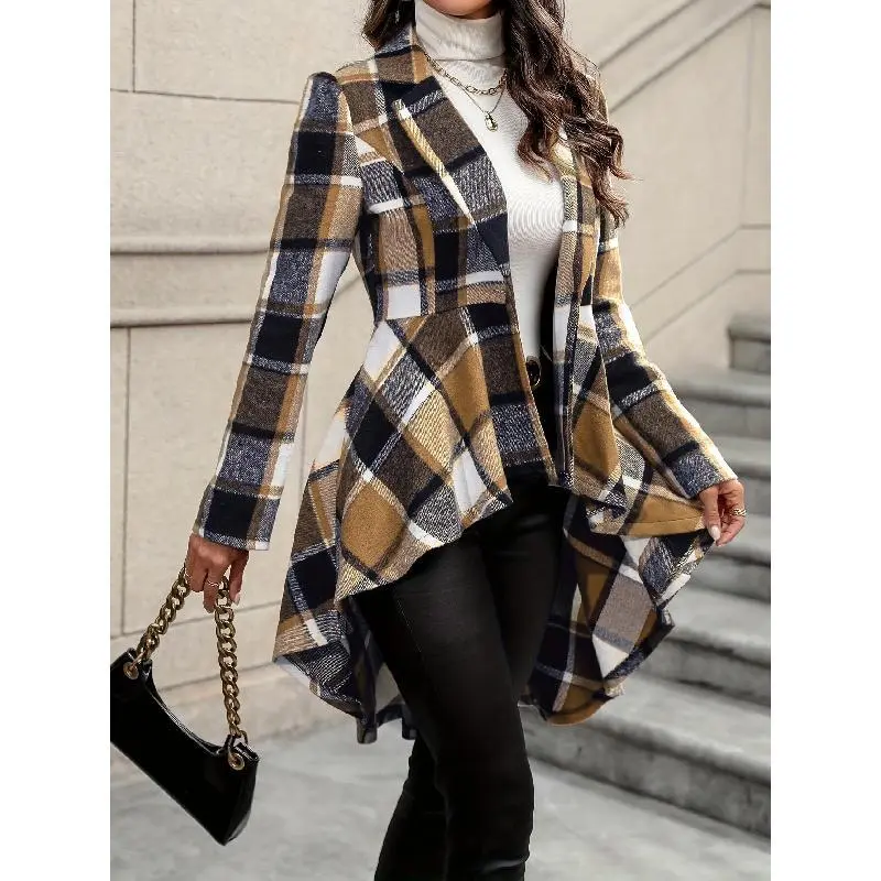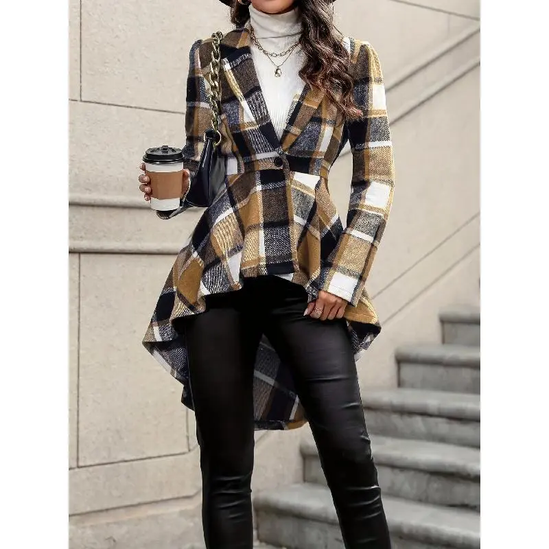 Plaza pattern button front jacket, elegant long sleeve high-low flare jacket Fall & Winter, WOMEN'S clothing