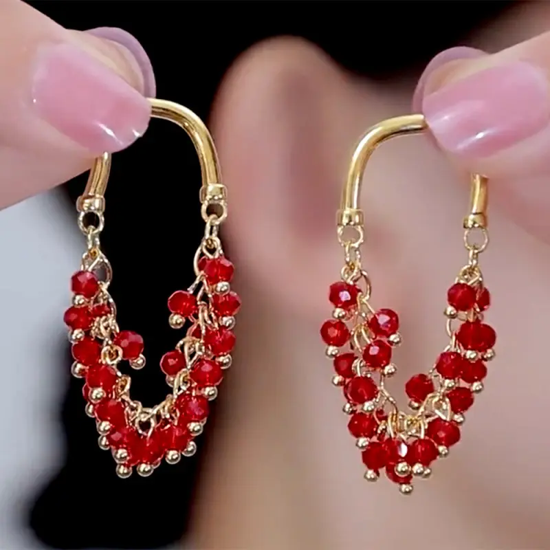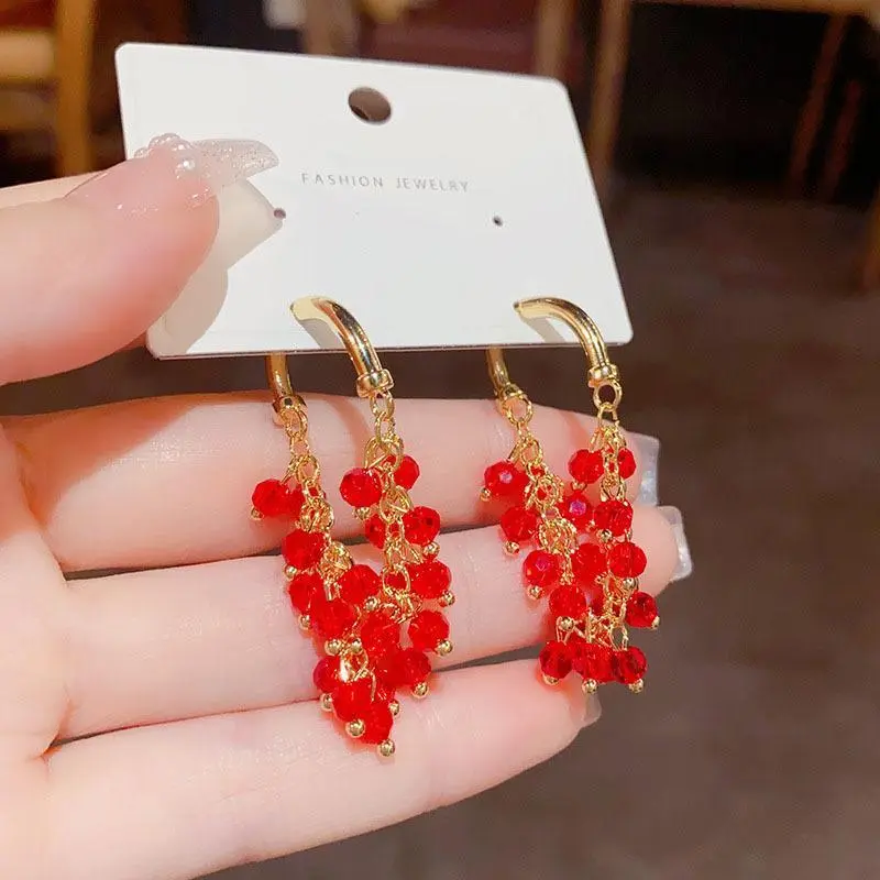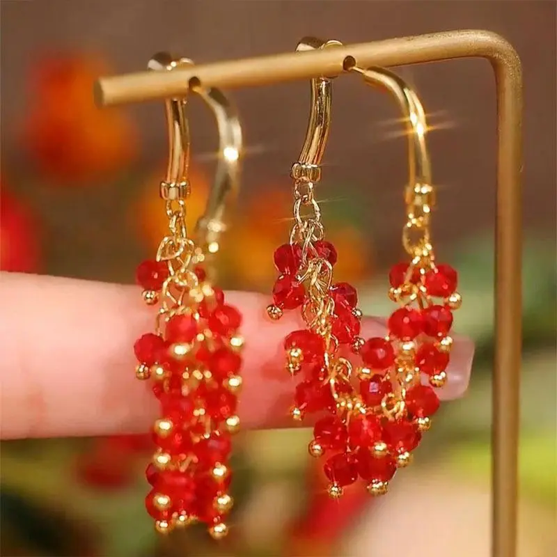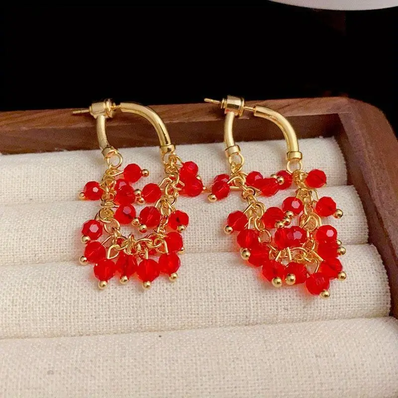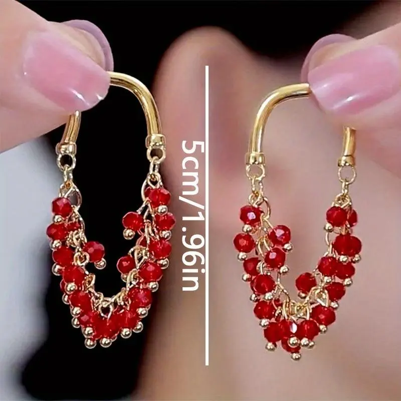 1 Pair Delicate Red Beaded Long Tassel Earrings, Creative and Fashionable Women's Jewelry, Suitable for Daily, Party, Holiday Wear, Christmas Gift for Women, Valentine's Day Gift