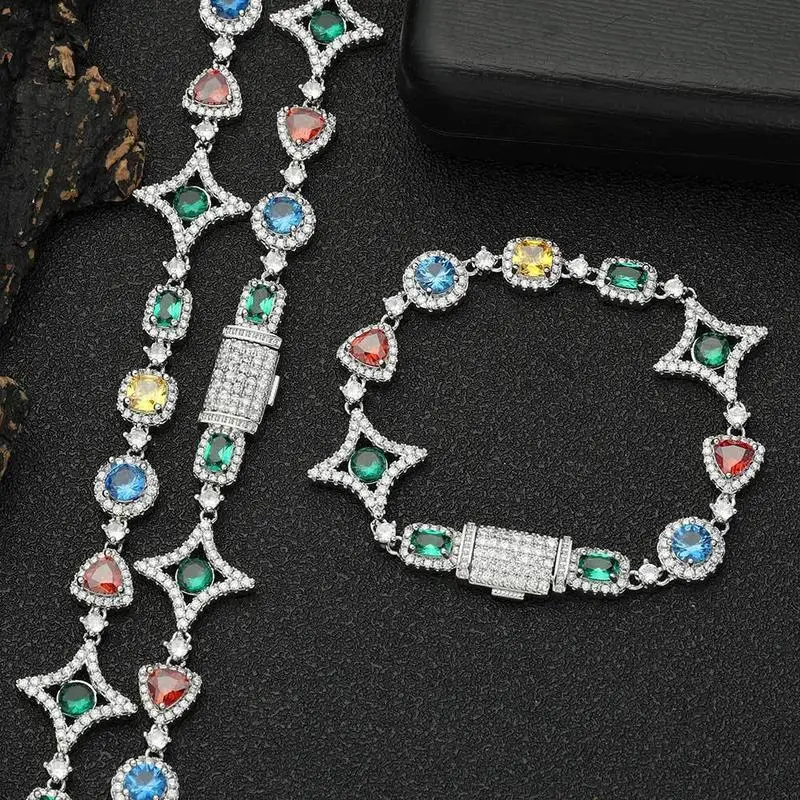 SSS Palace Multi-Color Gemstone Sapphire Tennis Star Set Necklace and Bracelet Discover the elegance of the SS S palace multi-color gemstone sapphire tennis star set necklace and bracelet, designed to elevate your style. Enhance your jewelry collection with the SS S palace multi-color gemstone sapphire tennis star set necklace and bracelet, designed to make a bold fashion statement.