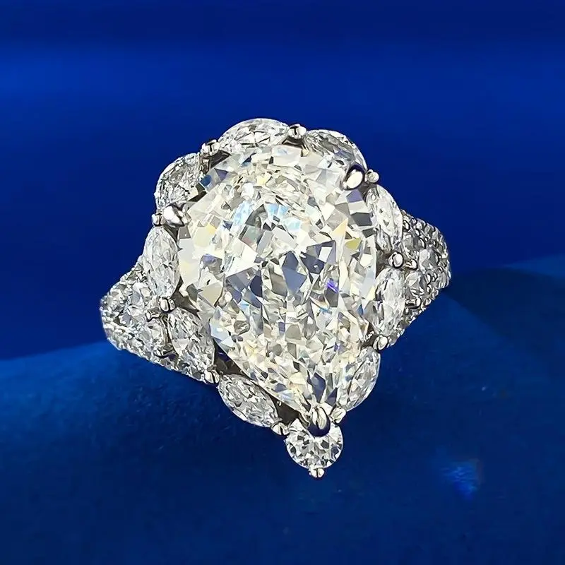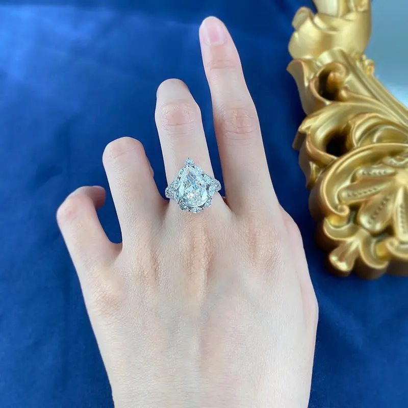 S925 Sterling Silver Ice Flower cut pear-shaped water drop ring 10*14mm 8A cubic zirconia ring fashion jewelry accessory woman Girl promise ring springt-359