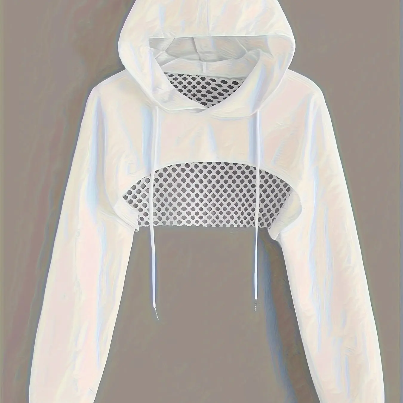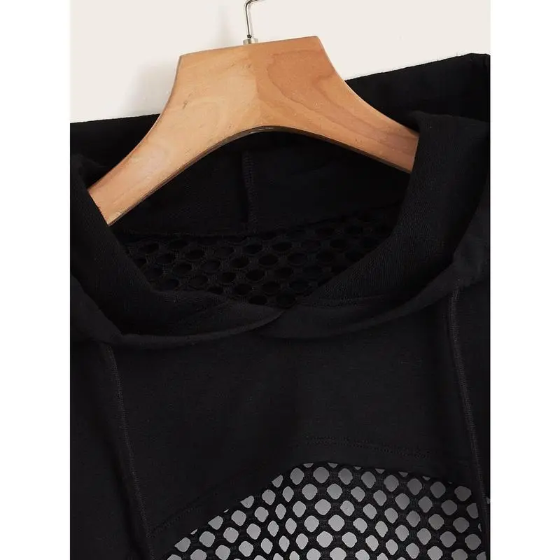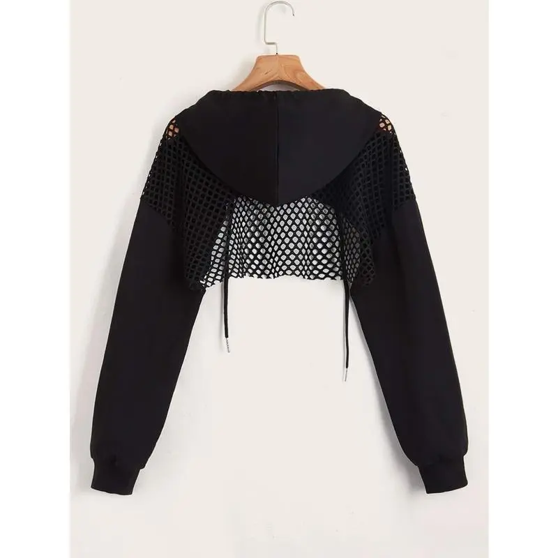 Menodora Sport Drop Shoulder Drawstring Hollow Out Crop Sports Hoodie Without Cami Top Cropped Hoodie