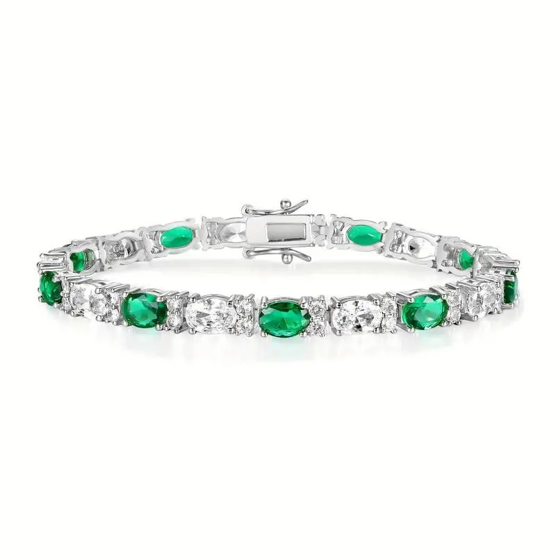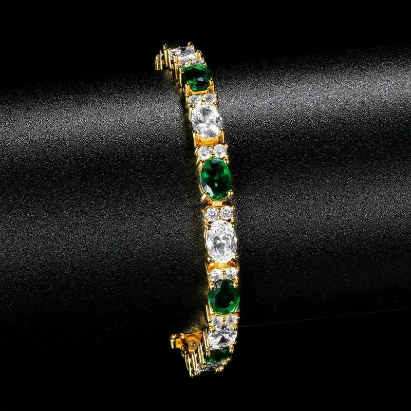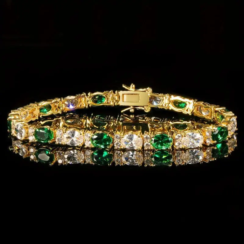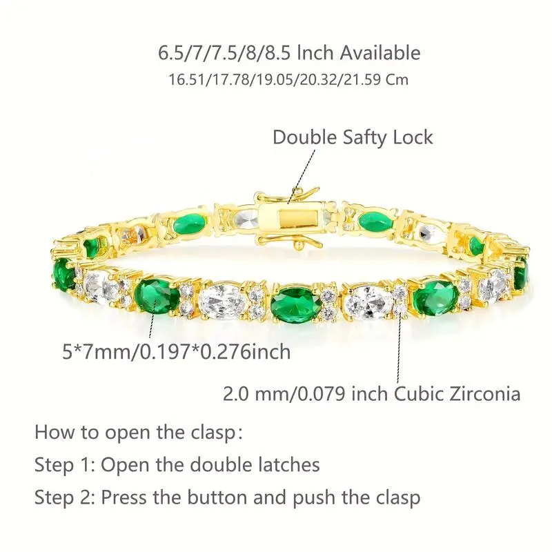 3*5mm Oval Green & White Zirconia Bracelet, Unisex 6.5-8.5 Golden Chain, Durable Neutral Style, Ideal for Weddings, Parties, Gifts, Chic Luxurious Design ATS63749