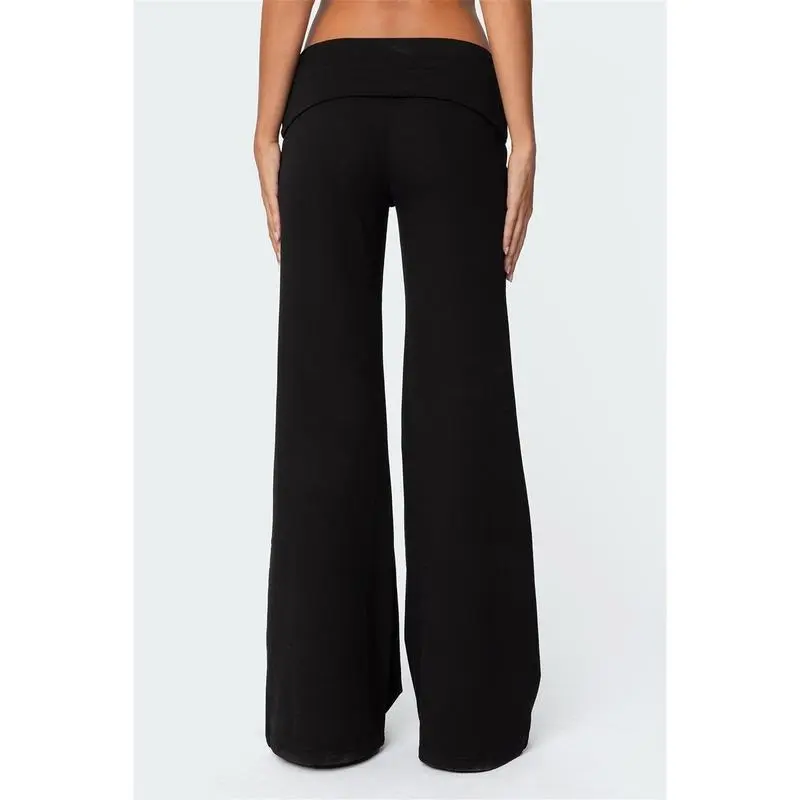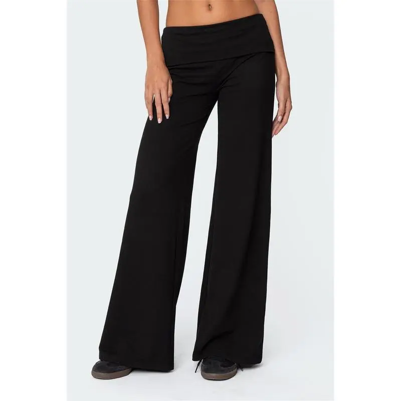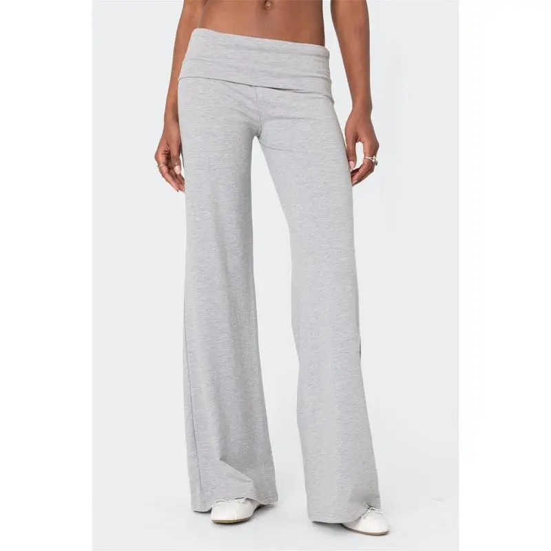 Lounge Yoga Pants for Women Fold Over Low Waist Wide Leg Sweatpants Flare Leggings Bell Bottoms Y2K Foldover Pants