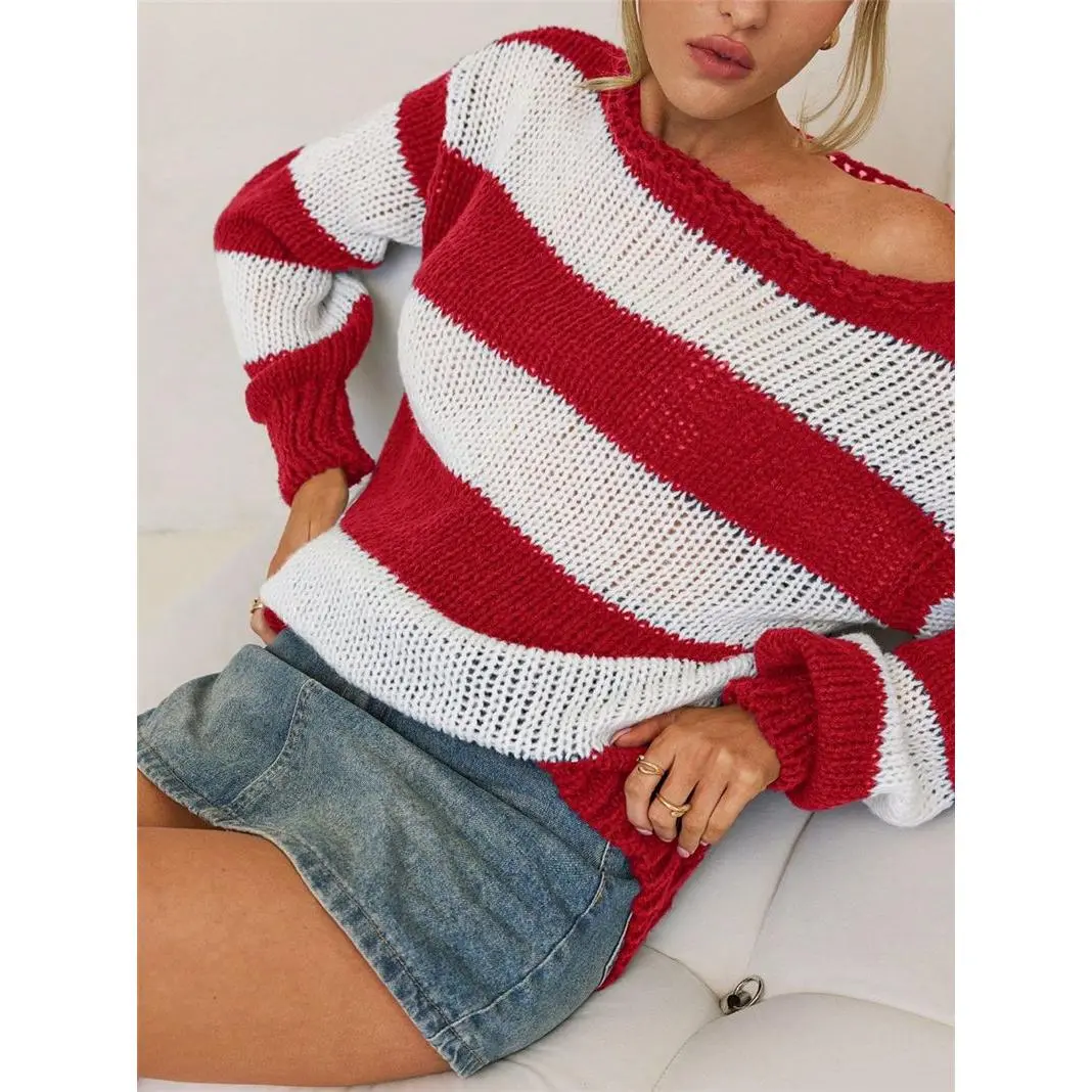 ��Off-shoulder Appeal��: The unique off-shoulder design highlights your neckline, providing a modern twist that sets this piece apart from traditional sweaters. ��Breathable Fabric��: Crafted with a moderate thickness, this sweater offers breathability, making it suitable for both spring and fall seasons. ��Striped Pattern��: The classic striped pattern adds visual interest, ensuring you stand out while maintaining a timeless aesthetic. ��Loose Fit��: Designed with a loose fit, this sweater allows ease of movement, making it an ideal choice for casual outings and relaxed gatherings. ��Knit Texture��: Made from high-quality knit fabric, this sweater delivers a soft touch, enhancing your wearing experience throughout the day.